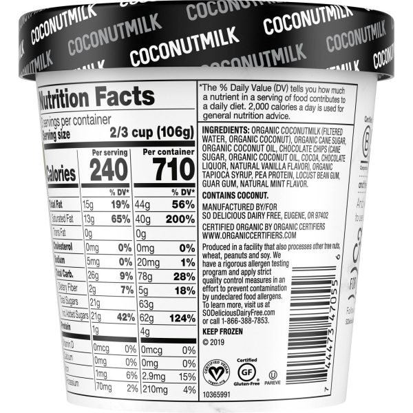 u0026bull;Dairy-free frozen dessertu003cbru003eu0026bull;Mint chip flavoru003cbru003eu0026bull;Made with organic coconutmilku003cbru003eu0026bull;Certified veganu003cbru003eu0026bull;Non-GMO Project Verifiedu003cbru003eu0026bull;Free of dairy, lactose, soy, and gluten