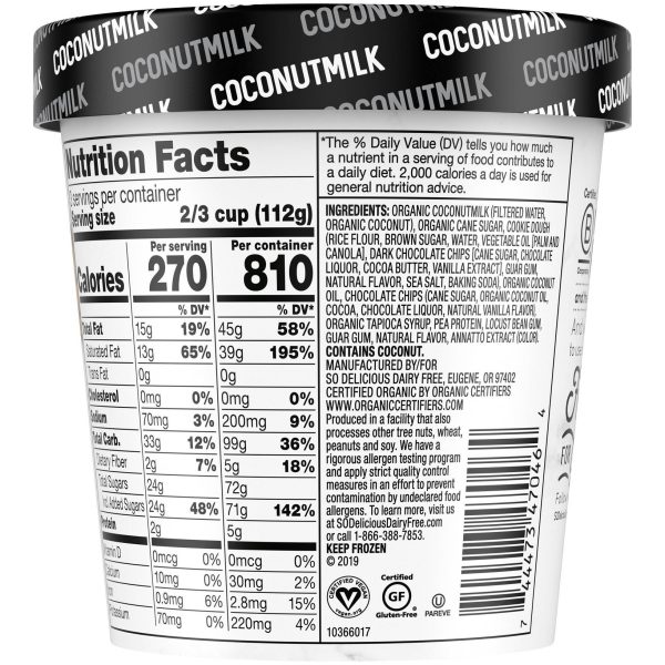 u0026bull;Dairy-free frozen dessertu003cbru003eu0026bull;Cookie dough flavoru003cbru003eu0026bull;Made with organic coconutmilku003cbru003eu0026bull;Certified veganu003cbru003eu0026bull;Non-GMO Project Verifiedu003cbru003eu0026bull;Free of dairy, lactose, soy, and gluten