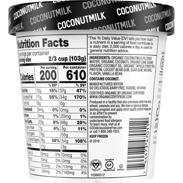 u0026bull;Dairy-free frozen dessertu003cbru003eu0026bull;Vanilla bean flavoru003cbru003eu0026bull;Made with organic coconutmilku003cbru003eu0026bull;Certified veganu003cbru003eu0026bull;Non-GMO Project Verifiedu003cbru003eu0026bull;Free of dairy, lactose, soy, and gluten