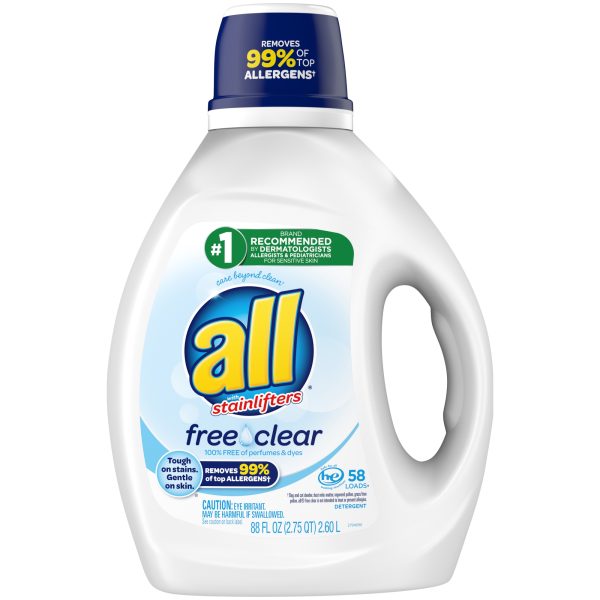 all Liquid Laundry Detergent, Free Clear for Sensitive Skin, 88 Fluid Ounces, 58 Loads