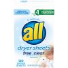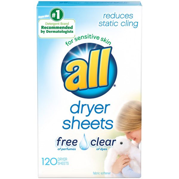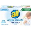 all Fabric Softener Dryer Sheets Free Clear for Sensitive Skin, 120 Count