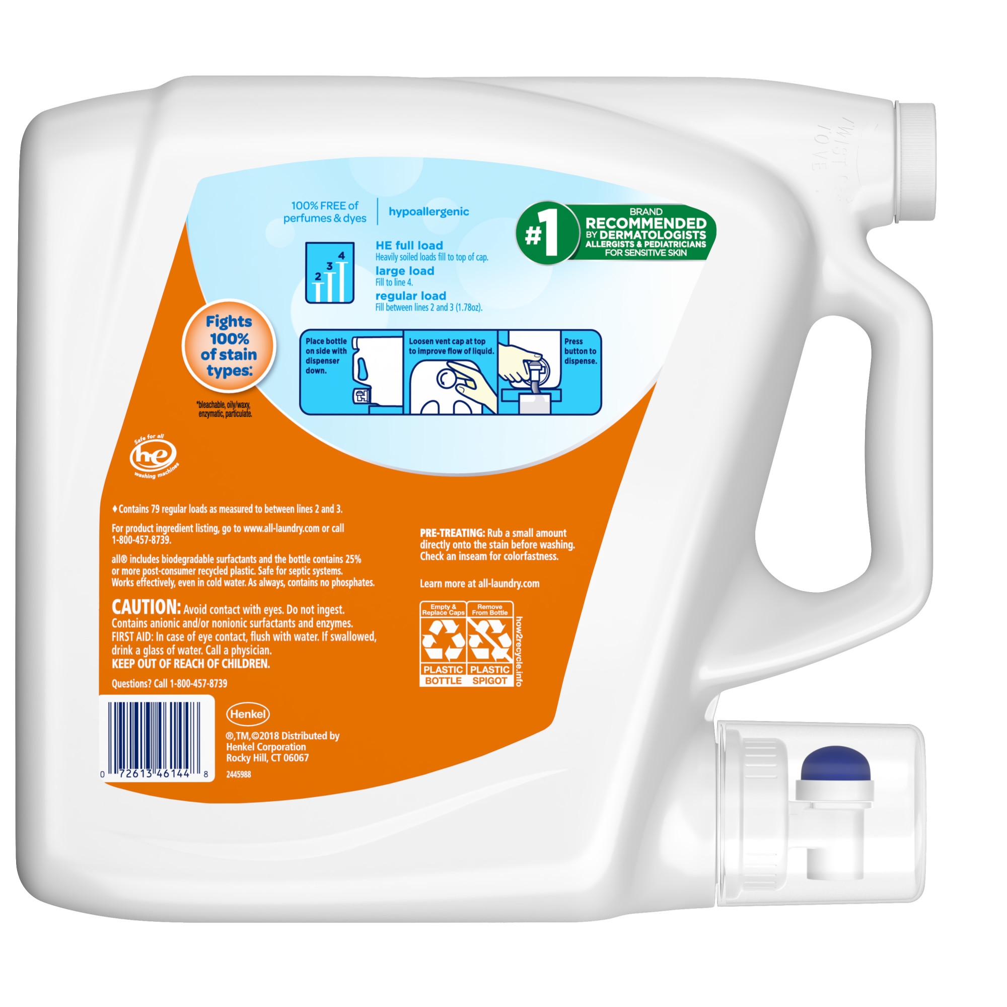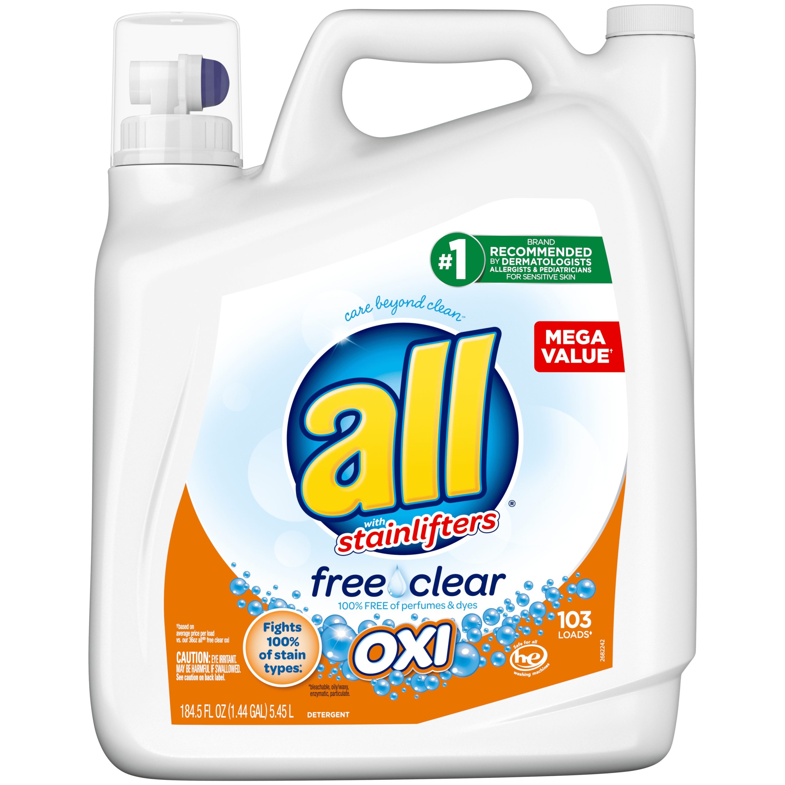 all Liquid Laundry Detergent with OXI Stain Removers and Whiteners, Free Clear, 141 Ounce, 79 Loads