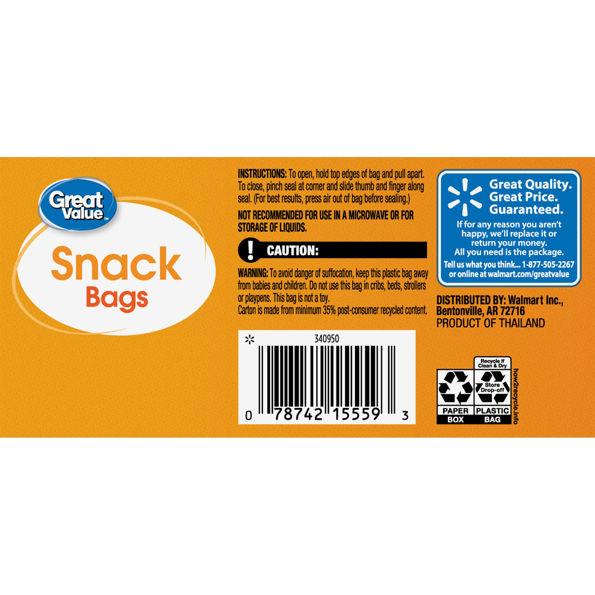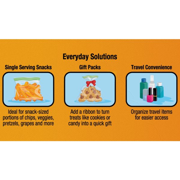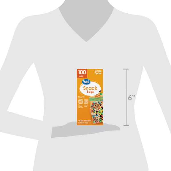 Keep your snacks fresh on the go with Great Value Fresh Seal Zipper Square Snack Bags. Our square snack-size bags feature our fresh seal zipper and are easy to fill and close. They’re useful for creating single-serving snack portions for your family, preparing gift bags for the holiday season, and preparing toiletries and other small items for travel. With 100 bags per box, you’ll have plenty on hand for when you need them most. Simplify snack time and home organization with Great Value Fresh Seal Zipper Square Snack Bags.