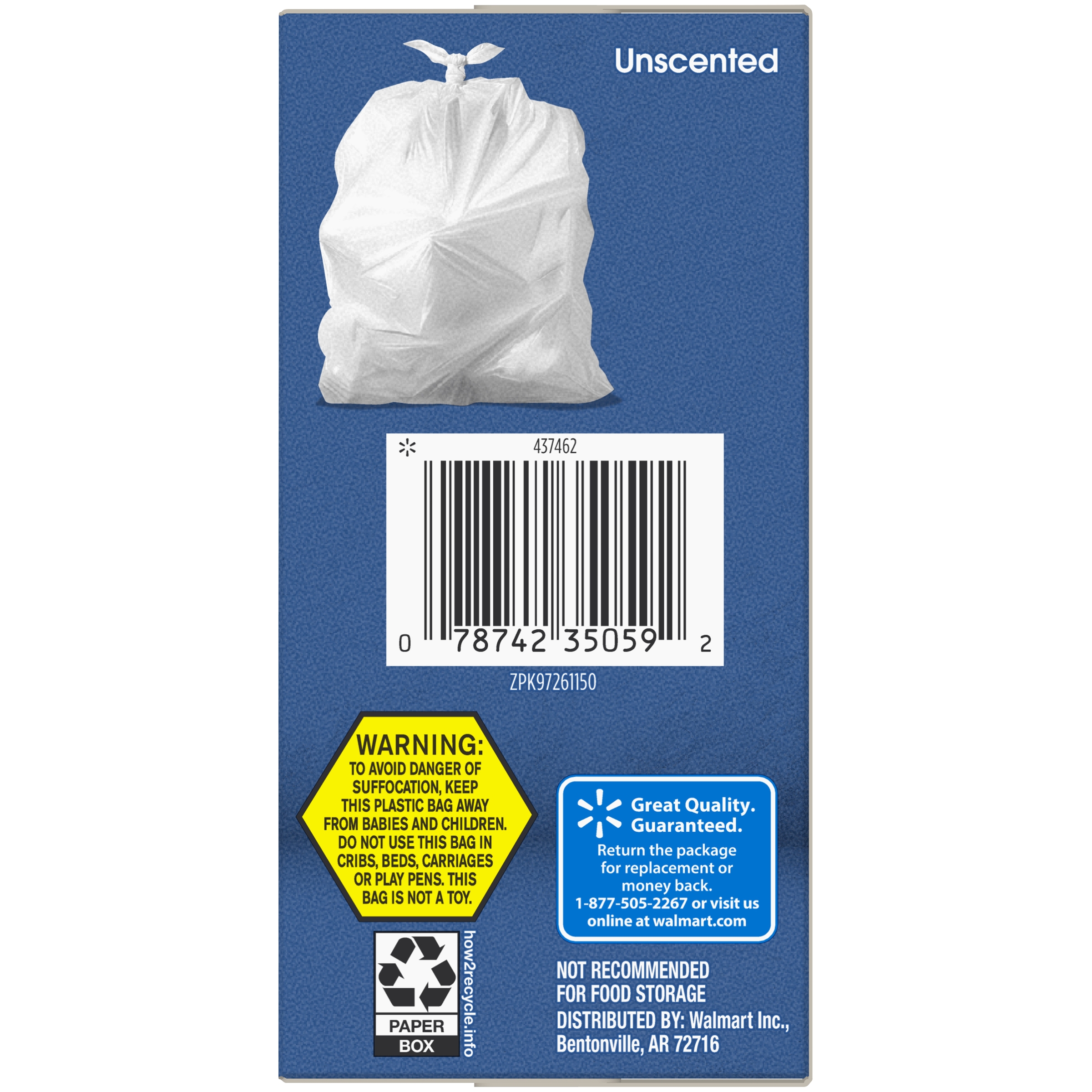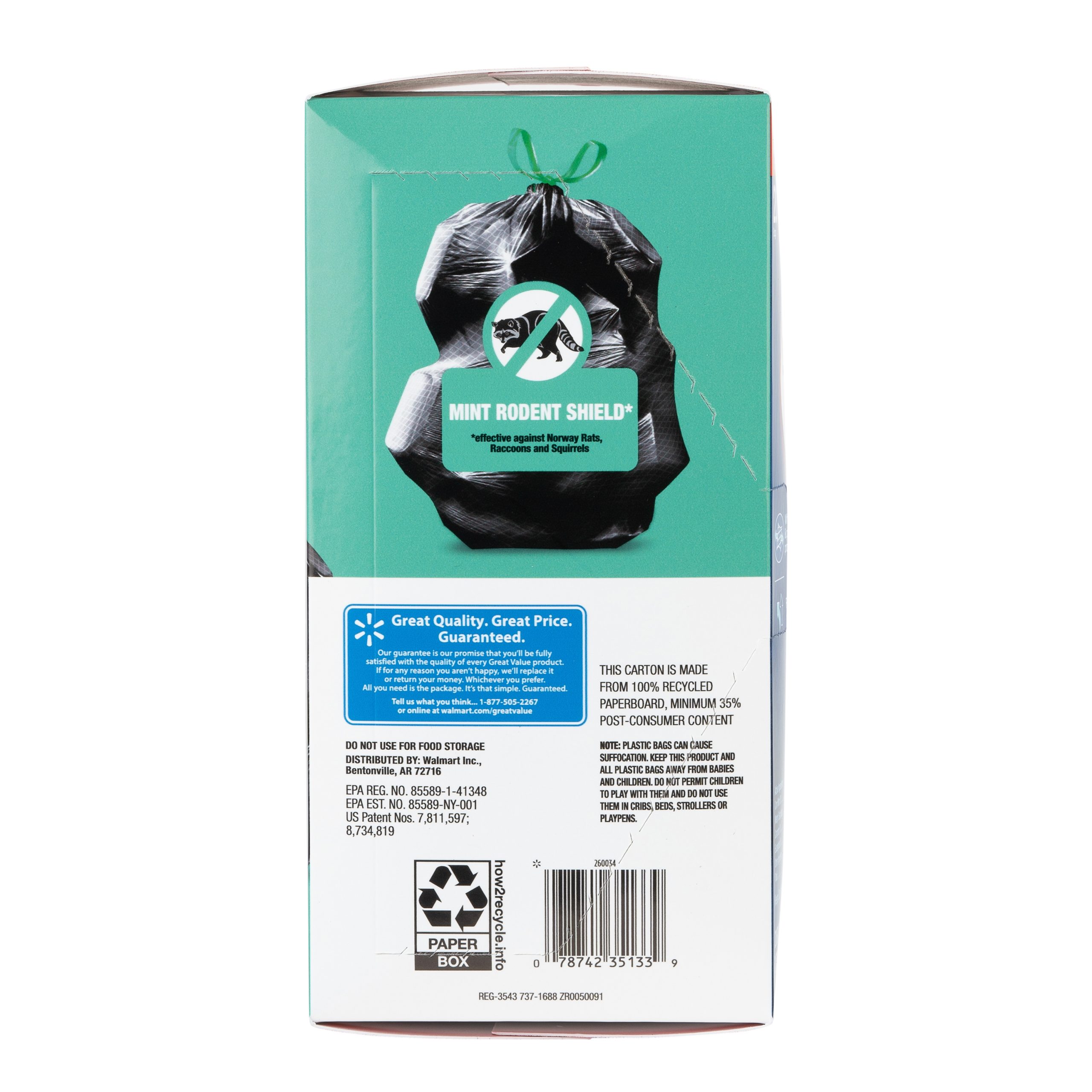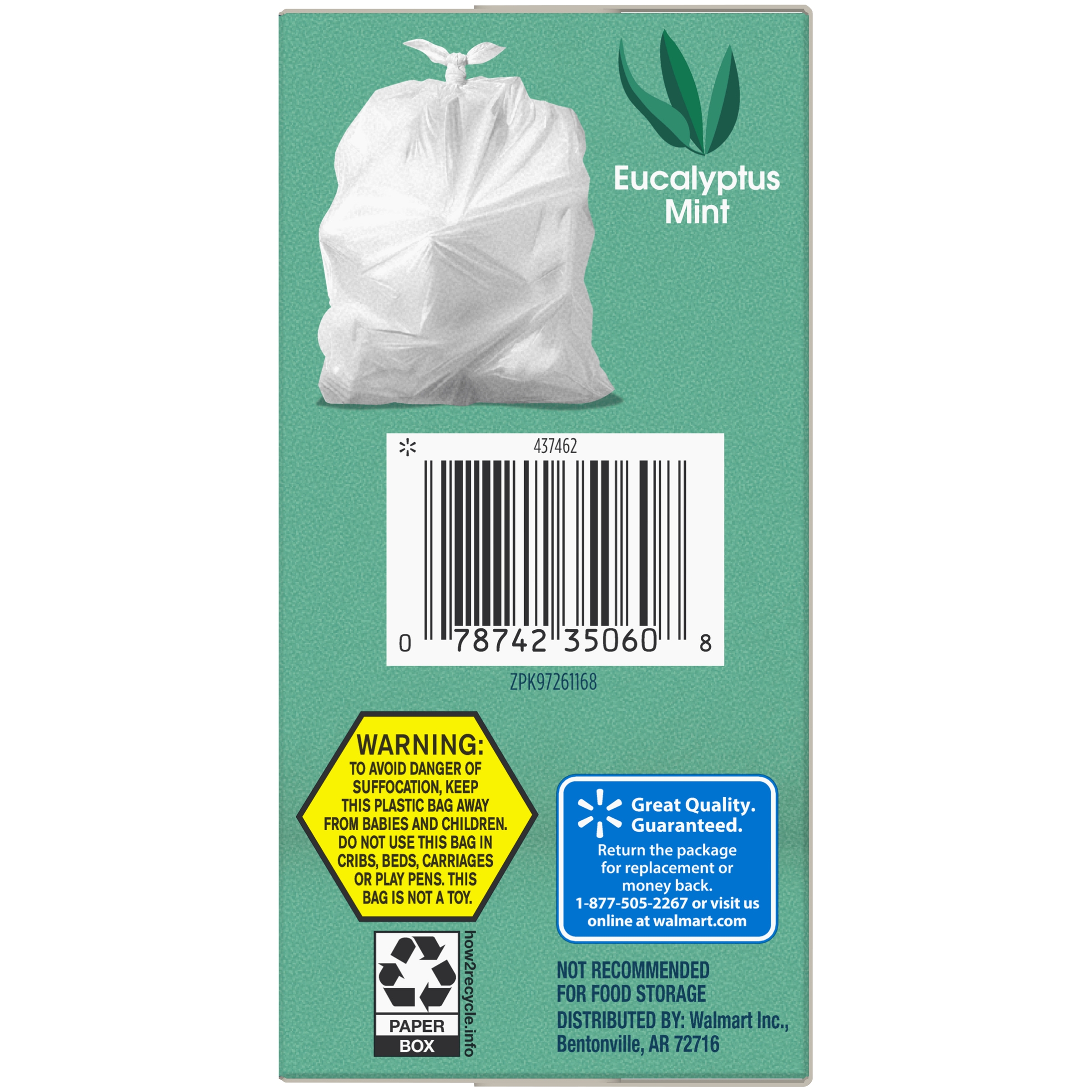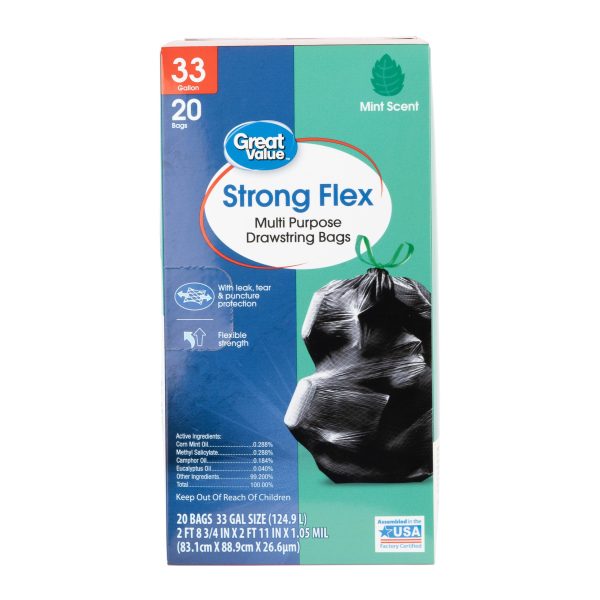 Great Value Multipurpose Trash Bags, Mint Scent, Strong Flex, 33 Gallon, 20 Count
