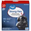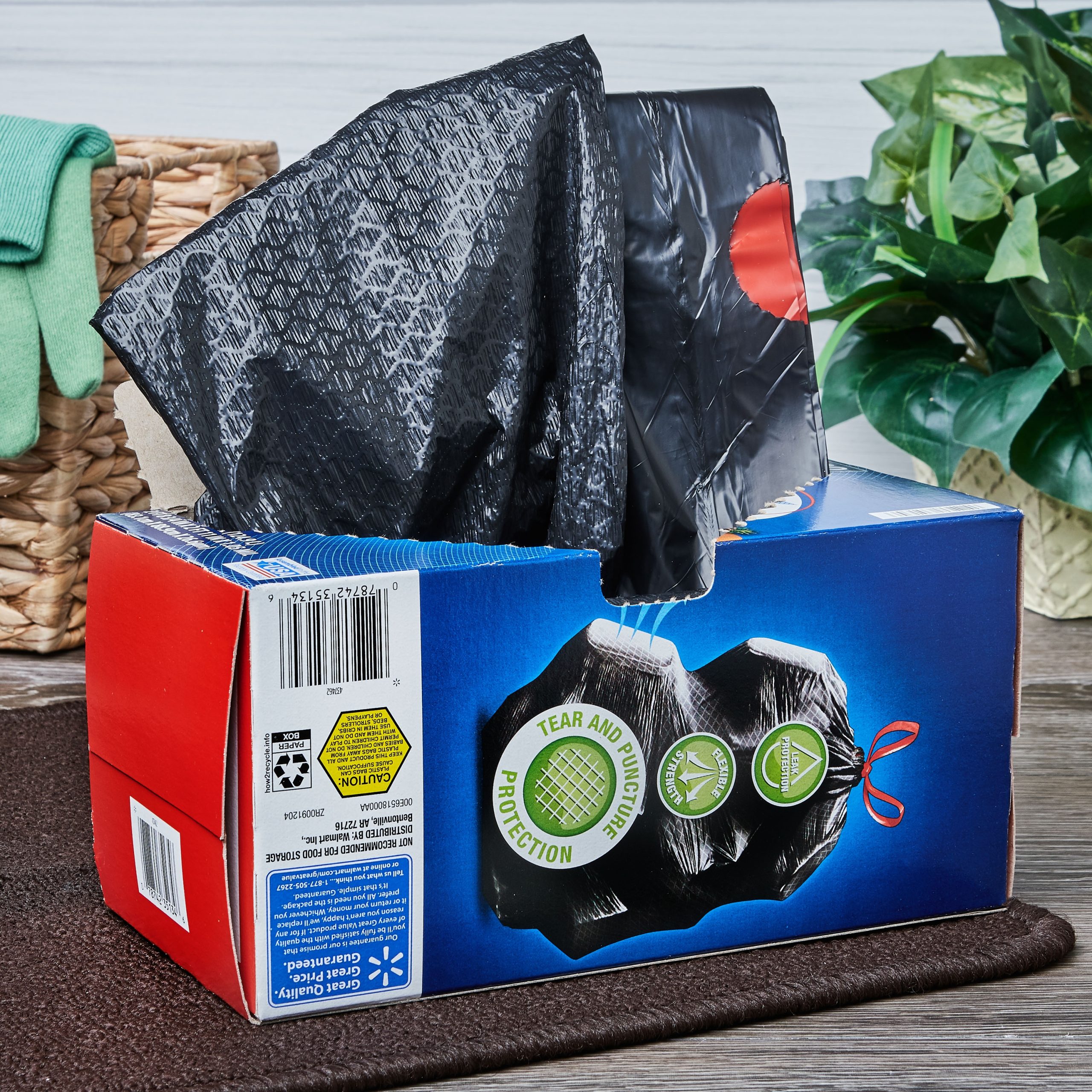Great Value Multi-Purpose Strong Flex Trash Bags offer an easy and convenient way to store and dispose of your trash. Designed for everyday use, these bags are made to resist rips and tears even when used at the maximum load. The Strong Flex bags are stronger than regular kitchen trash bags, and their 33-gallon size is great for tidying up after parties or for use in the kitchen over several days. Their drawstring closure makes them easy to tie, lift and carry, and their refreshing scent keeps your home smelling clean whether you’ve just changed the trash out or it’s time to do so. Keeping your home clean and free of waste is made even easier when you have our Great Value Multi-Purpose Strong Flex Trash Bags ready to use.