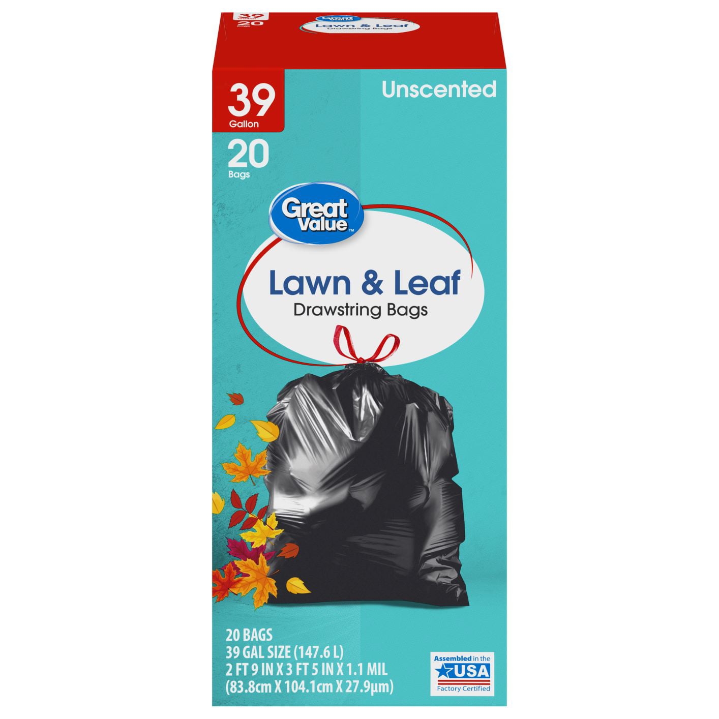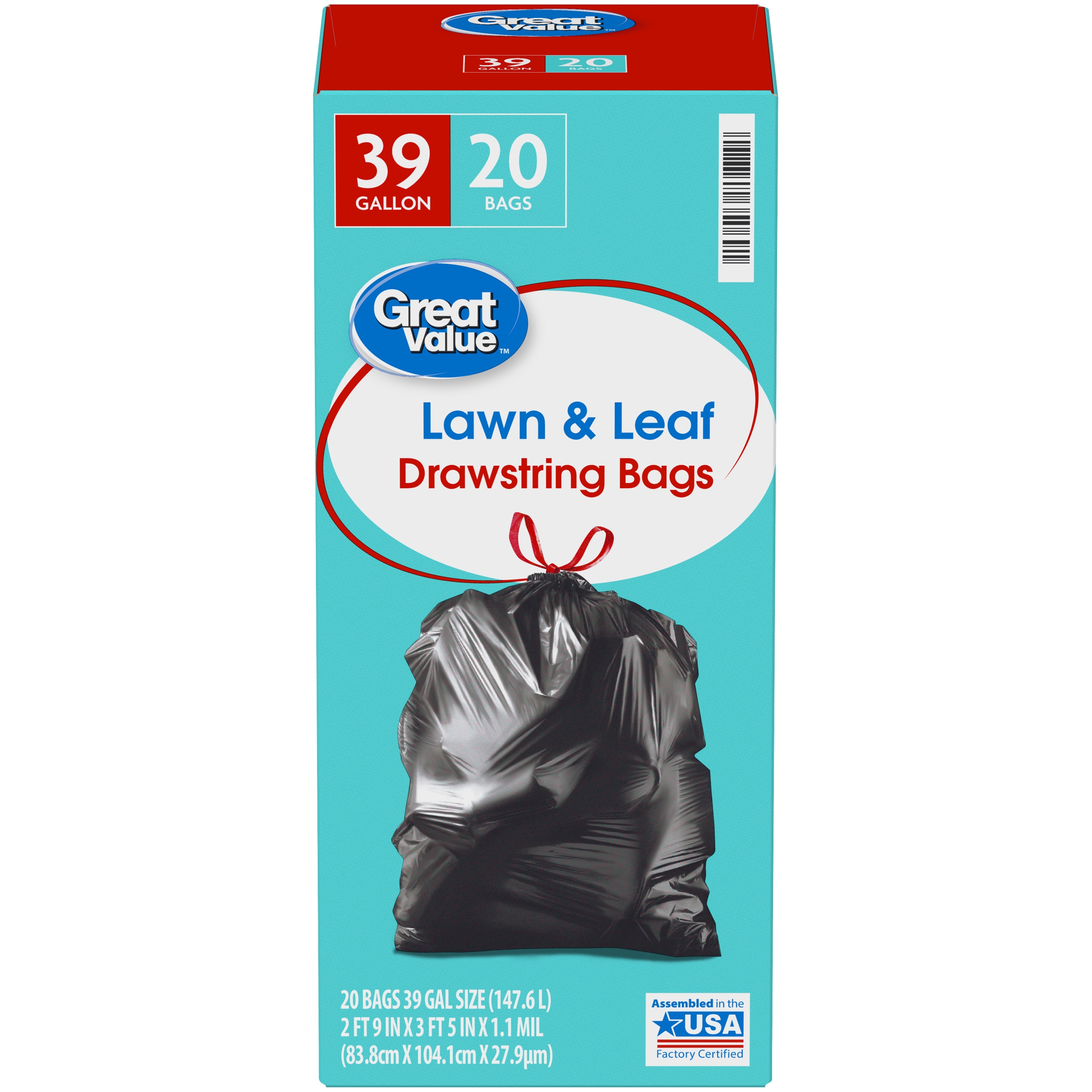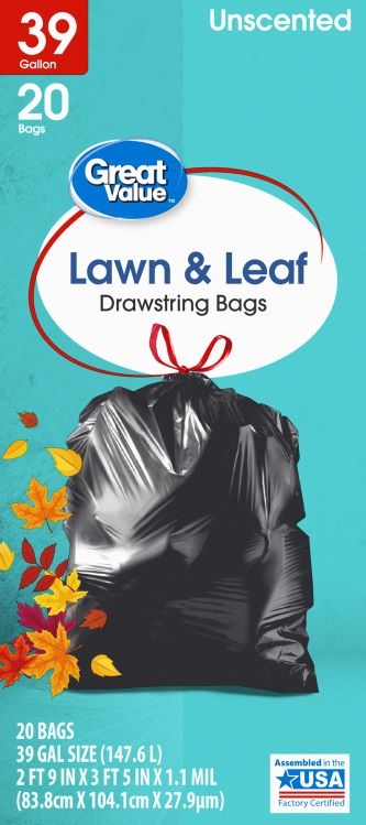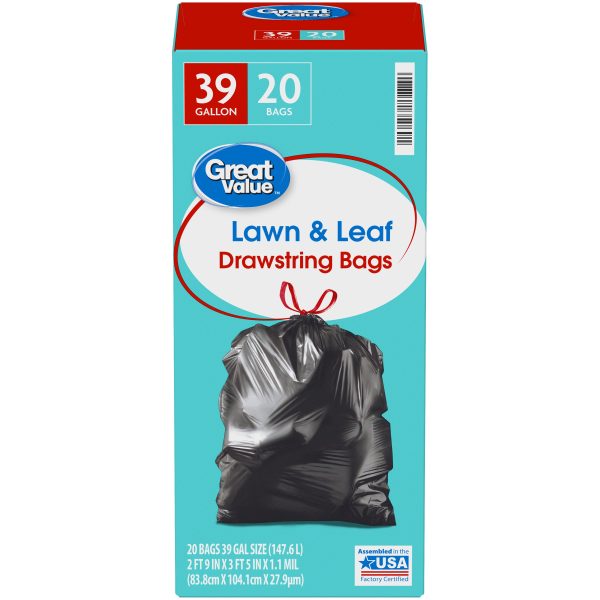 Great Value Large Lawn & Leaf Trash Bags, 39 Gallon, 20 Bags (Drawstring)