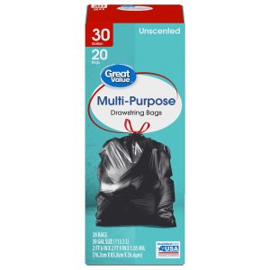 Great Value Multi-Purpose Trash Bags, 30 Gallon, 20 Bags (Drawstring)