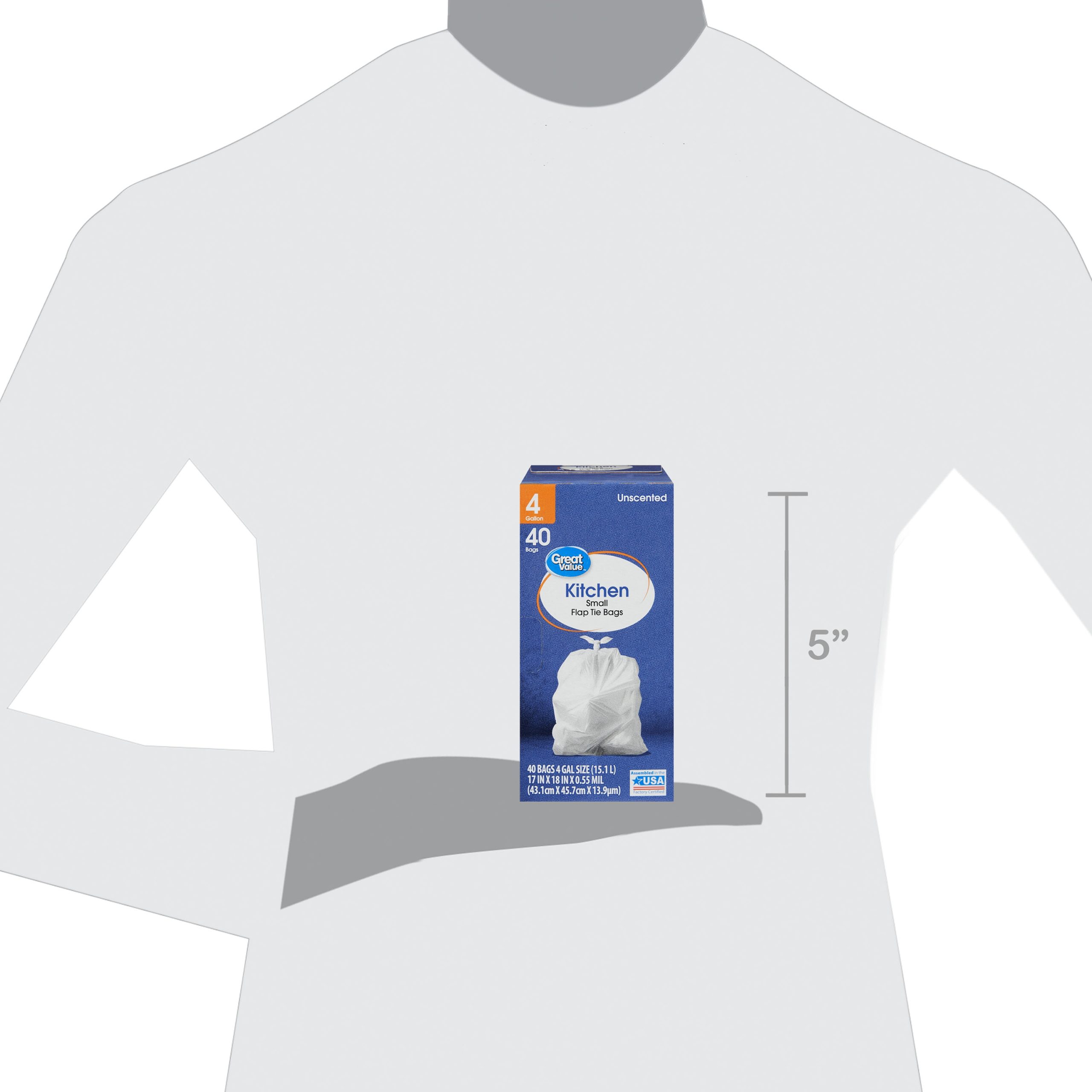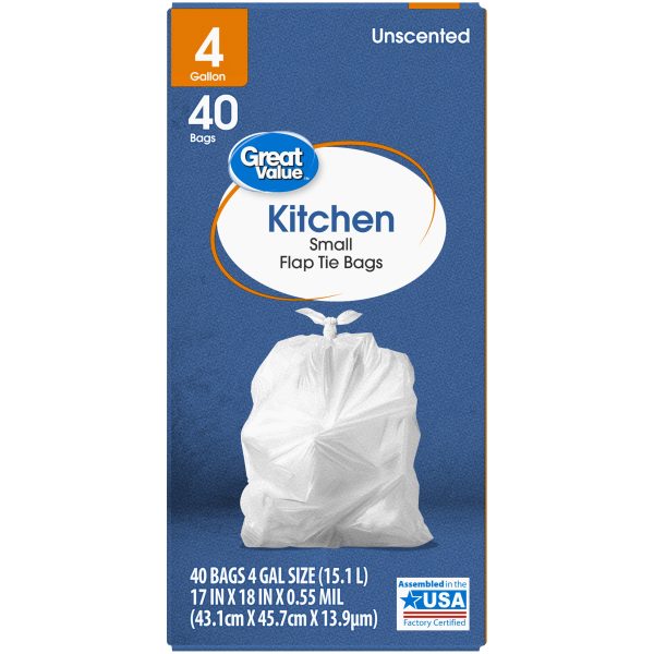 Great Value Flap Tie Kitchen Bags, Unscented, 4 gallon, 40 Count
