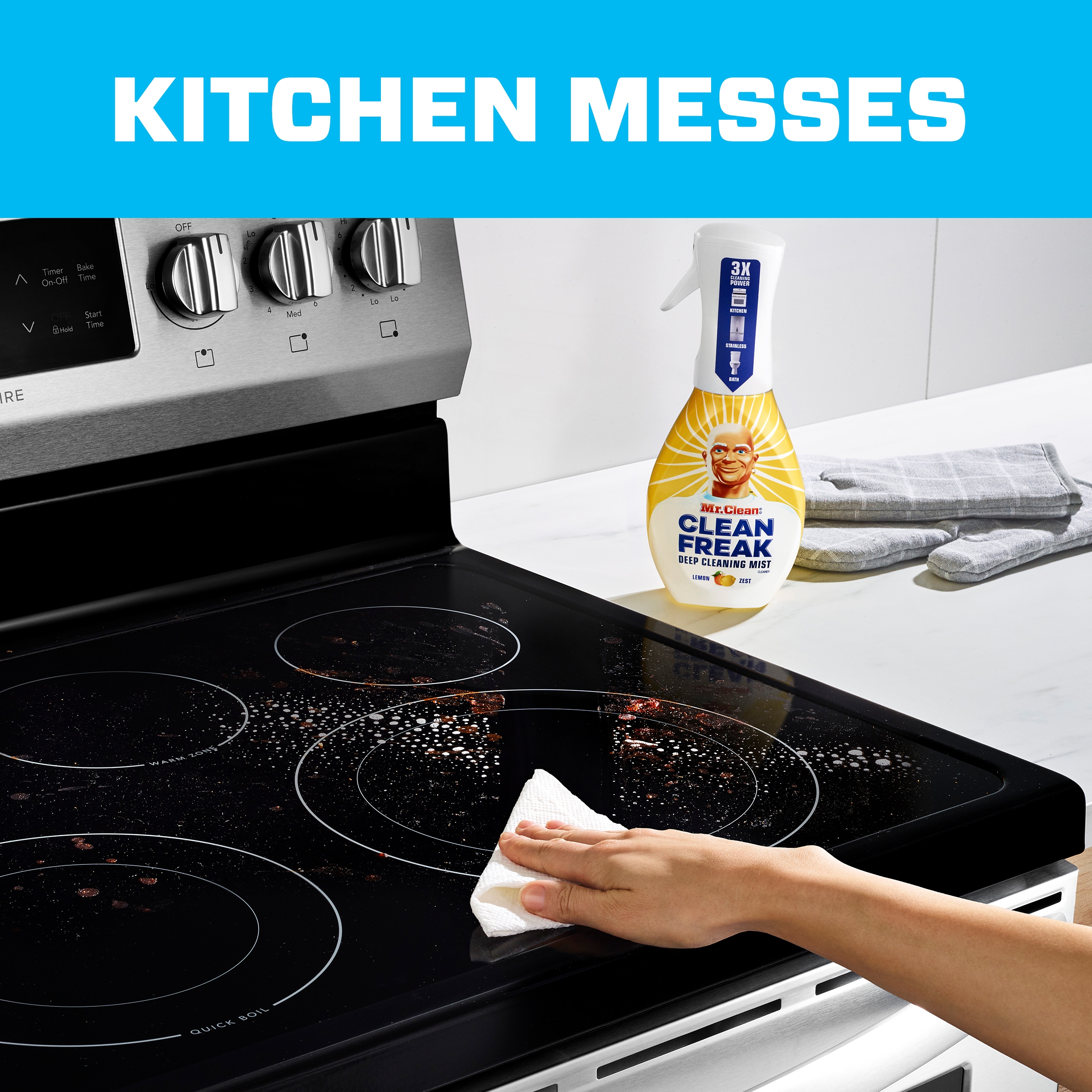 Clean Freak Mist multi-surface cleaning spray muscles through grime, tough dirt, and grease to make messes a distant memory. Use it from any angle to put hard-to-reach dirt away for good. And to top it all off, Clean Freak Mist multi-purpose spray leaves your home smelling fresh with a Lemon Zest scent.
