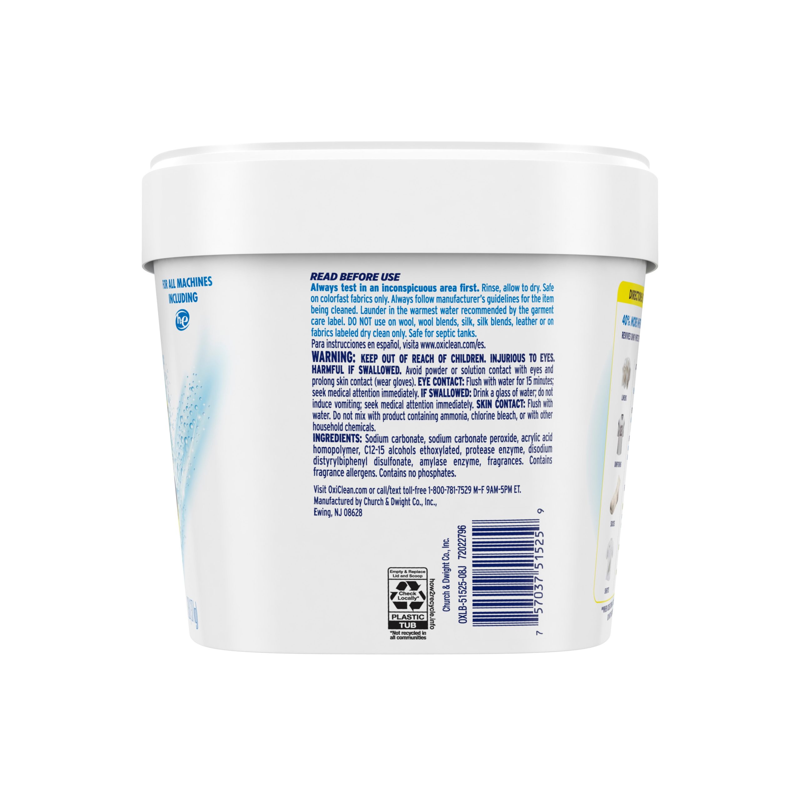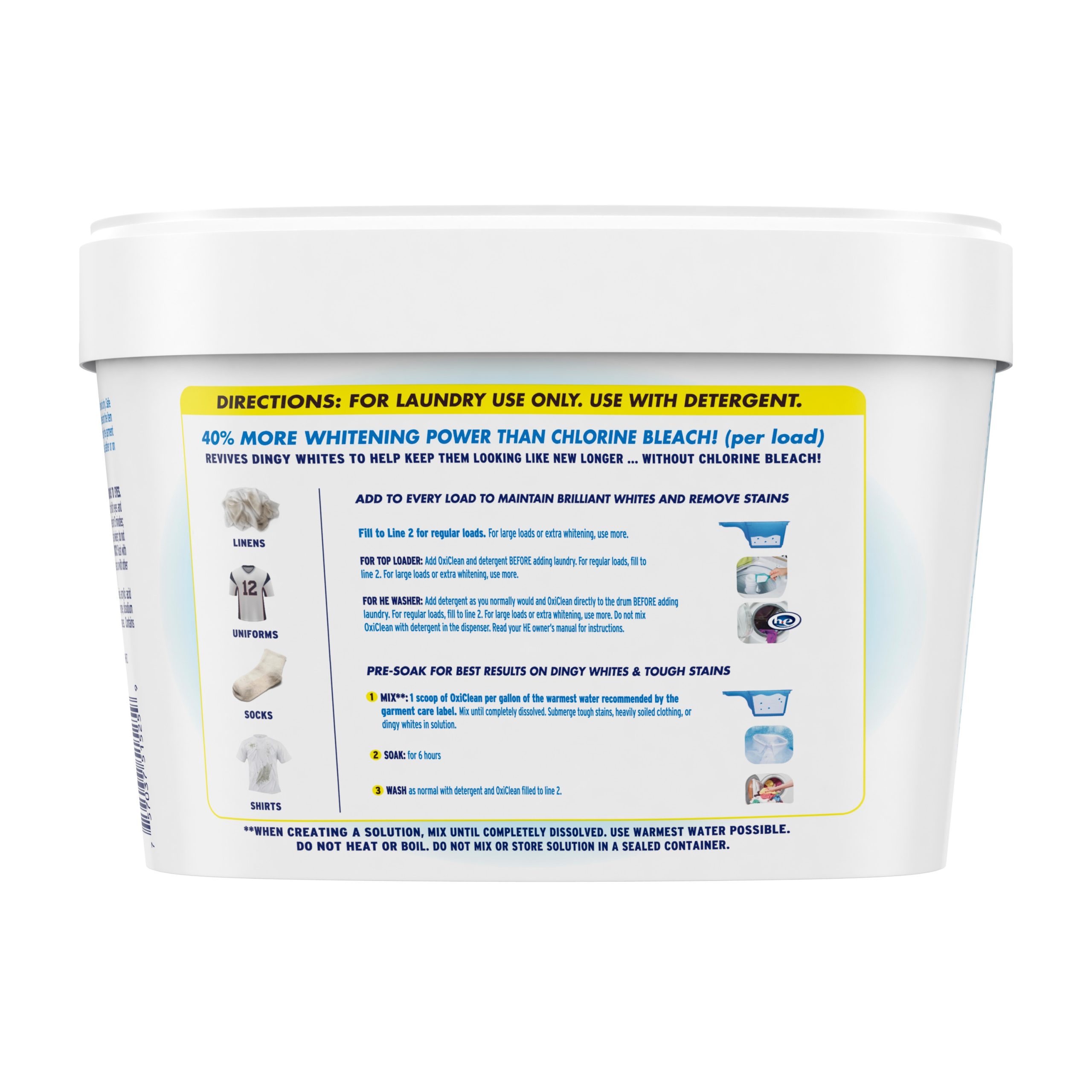 OxiClean White Revive Laundry Whitener + Stain Remover give your whites a new take on life! This chlorine-free formula is color safe and works with your detergent to remove stains and brighten and whiten your clothing. It has 40% more whitening power per load than chlorine bleach. Add it to every load of laundry or you can even dissolve some in water to pre-soak. Includes one 3 lb. box of OxiClean White Revive Laundry Whitener + Stain Remover. OxiClean offers a wide array of products to fit all your stain removal needs. The OxiClean family has grown to include stain removers, pretreaters, laundry detergent, and much more!