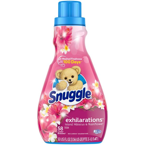 Brighten your day with Island Hibiscus & Rainflower scent, a delightful combination of soft white florals, bright hibiscus notes and lush lotus flowers blended with juicy tropical fruits. Using fabric softener in the wash can provide better softness, better freshness, reducing wrinkles, and reducing static cling to the fabrics in your clothes, towels, and sheets. For a top loader washing machine, add Snuggle brand liquid fabric softener during the final rinse cycle or use an automatic dispenser for added convenience. To avoid spotting, do not pour Snuggle directly onto clothes. For a front loader machine, add Snuggle brand liquid fabric softener to the built-in fabric softener tray that is often placed to the right or left of the detergent tray. Safe for standard and HE washing machines. Includes one 50 ounce bottle of liquid fabric softener.