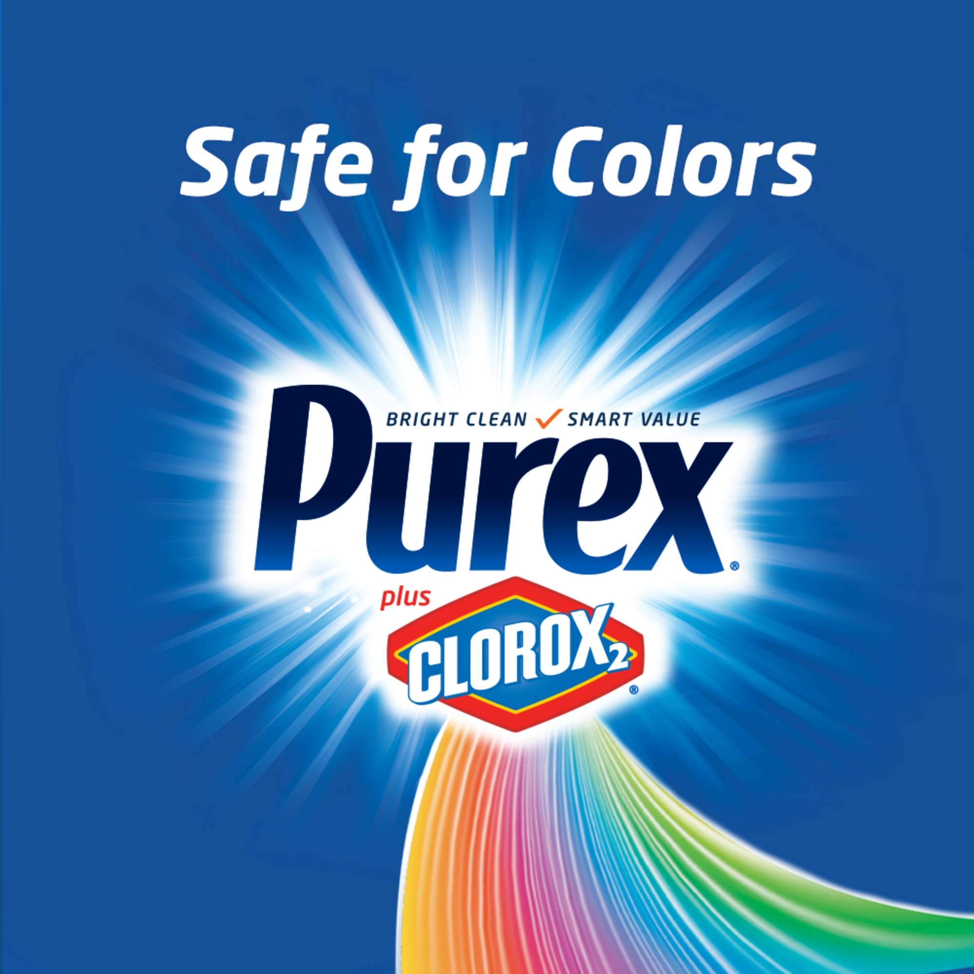 Purex2 Stain Fighter & Bright Booster laundry detergent enhancer is strong enough to remove tough stains like blood, grass, dirt, oil, wine, coffee, tea and others, while leaving your colors bright and your whites their whitest. Purex2 Stain Fighter & Bright Booster is made with a color safe bleach that is chlorine-free and 100% safe on all colorfast washables, whites, and delicate clothes. You can add it to every load to get rid of tough stains and brighten your laundry.