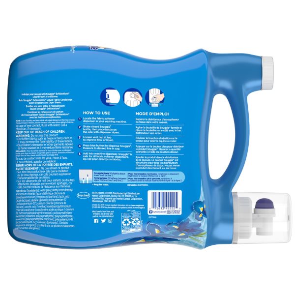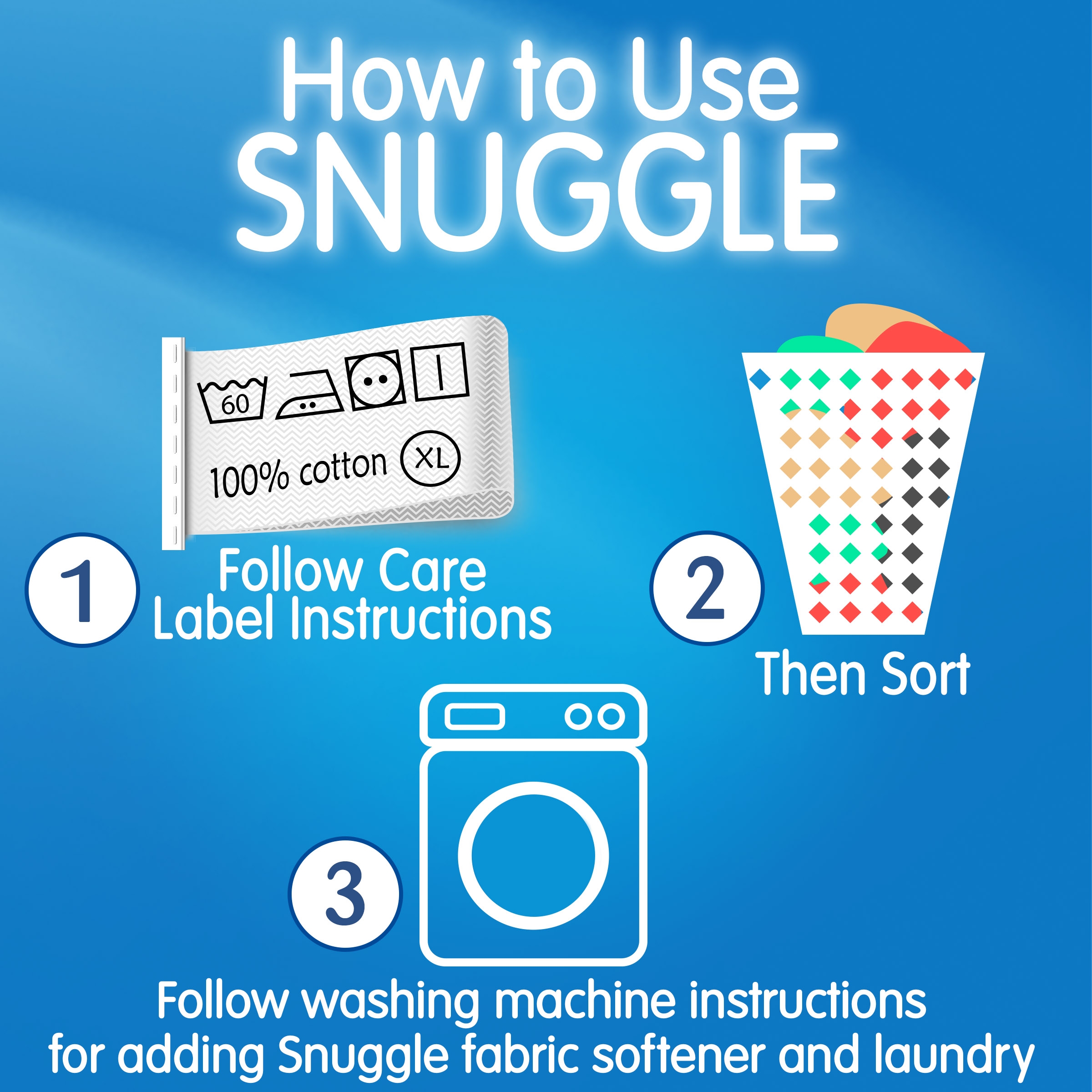 Delight your senses with Blue Iris & Ocean Breeze scent, a fresh burst of blue Iris and bamboo flowers mixed with crisp green apple in combination with soft bamboo and woody notes. Using fabric softener in the wash can provide better softness, better freshness, reducing wrinkles, and reducing static cling to the fabrics in your clothes, towels, and sheets. For a top loader washing machine, add Snuggle brand liquid fabric softener during the final rinse cycle or use an automatic dispenser for added convenience. To avoid spotting, do not pour Snuggle directly onto clothes. For a front loader machine, add Snuggle brand liquid fabric softener to the built-in fabric softener tray that is often placed to the right or left of the detergent tray. Safe for standard and HE washing machines. Includes one 96 ounce bottle of liquid fabric softener.