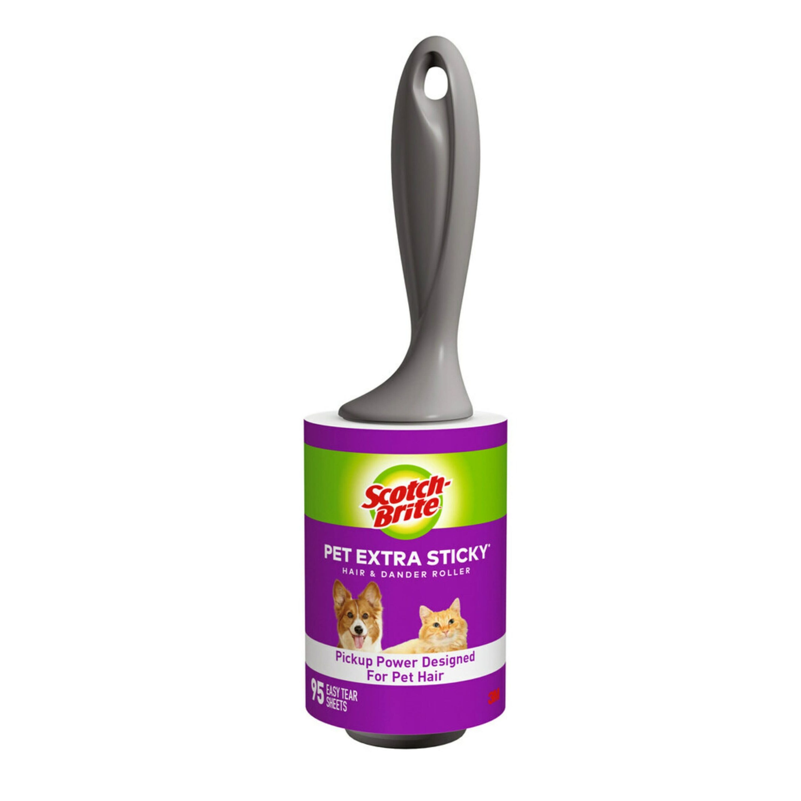 The Scotch Brite™ Pet Hair Roller is the fast, easy way to keep clothes and fabrics looking neat, clean and pet hair free. The only lint roller made with Scotch™ Brand adhesive. Designed for easy rolling.