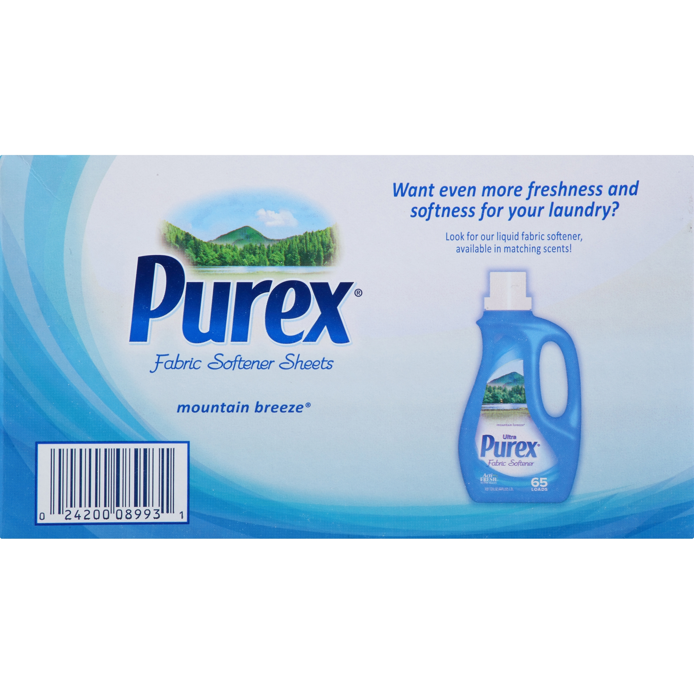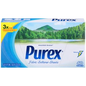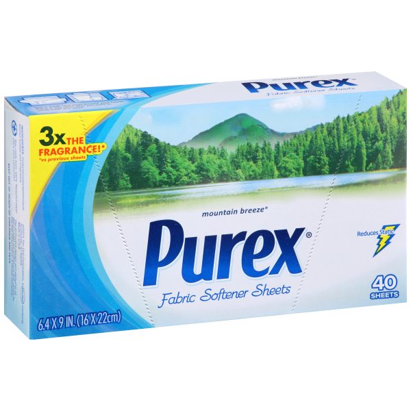 Who knew that one little sheet could do so much? Purex Fabric Softener Dryer Sheets reduce static cling and leave your family’s laundry soft and smelling fresh. Greatly improved Purex Dryer Sheets have three times more fragrance, and great static cling reduction. The smaller box also happens to be at a more affordable price point passing more value to you and your family. Warnings: Not intended for use on children’s sleepwear or other flame resistant fabrics as it may reduce flame resistance. Keep out of reach of children and pets. This package includes one box of 40 Purex Fabric Softener Dryer Sheets in Mountain Breeze scent