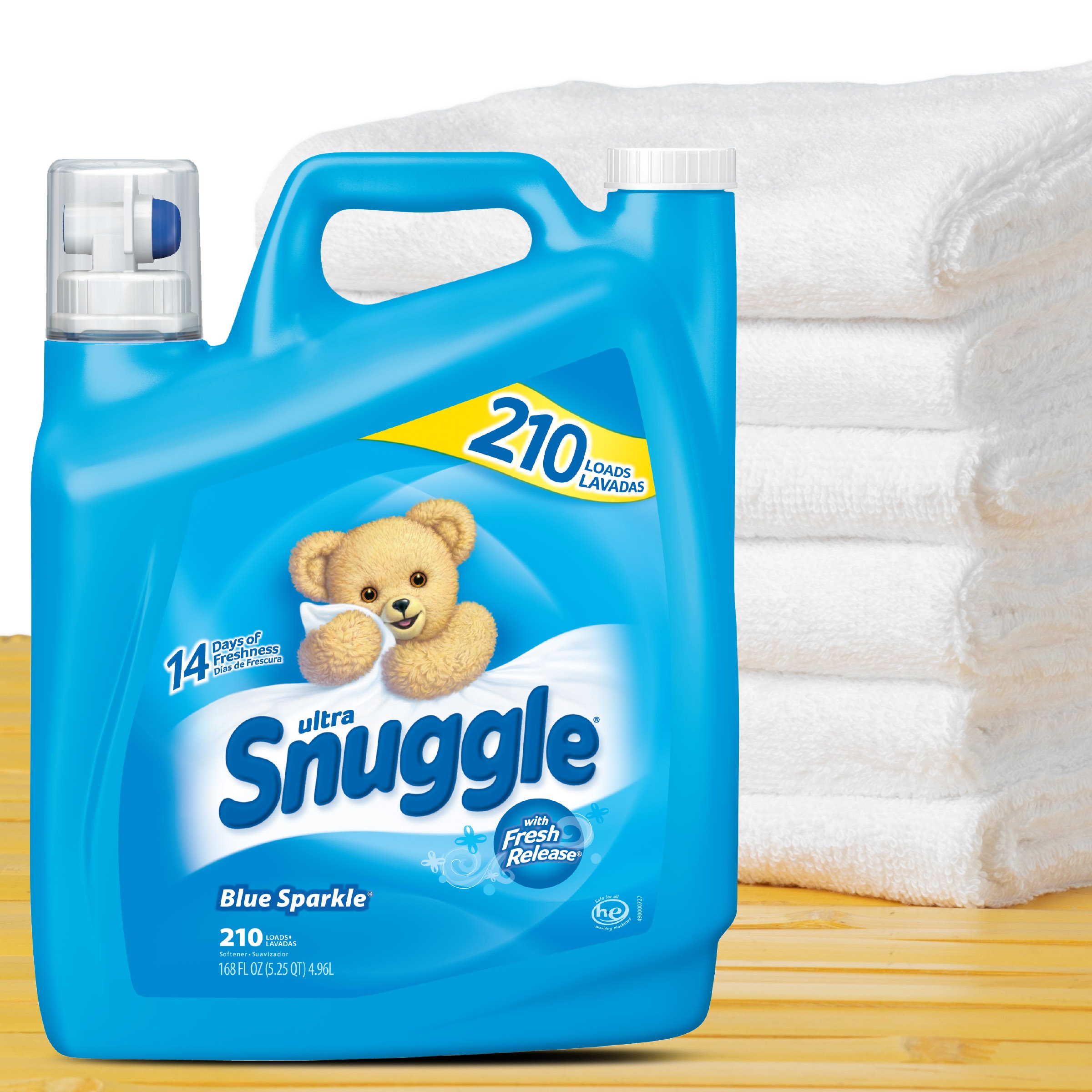 Snuggle’s original Blue Sparkle scent is a fresh and clean blend of white floral and bright green citrus notes that snuggle up to warm woody notes and soft musk for a comforting, long-lasting freshness your family will love. Using fabric softener in the wash can provide better softness, better freshness, reducing wrinkles, and reducing static cling to the fabrics in your clothes, towels, and sheets. Add Snuggle brand liquid fabric softener during the final rinse cycle or use an automatic dispenser for added convenience. Safe for standard and HE washing machines. This package includes one 168-ounce bottle of Snuggle Blue Sparkle liquid fabric softener, enough for 210 loads.