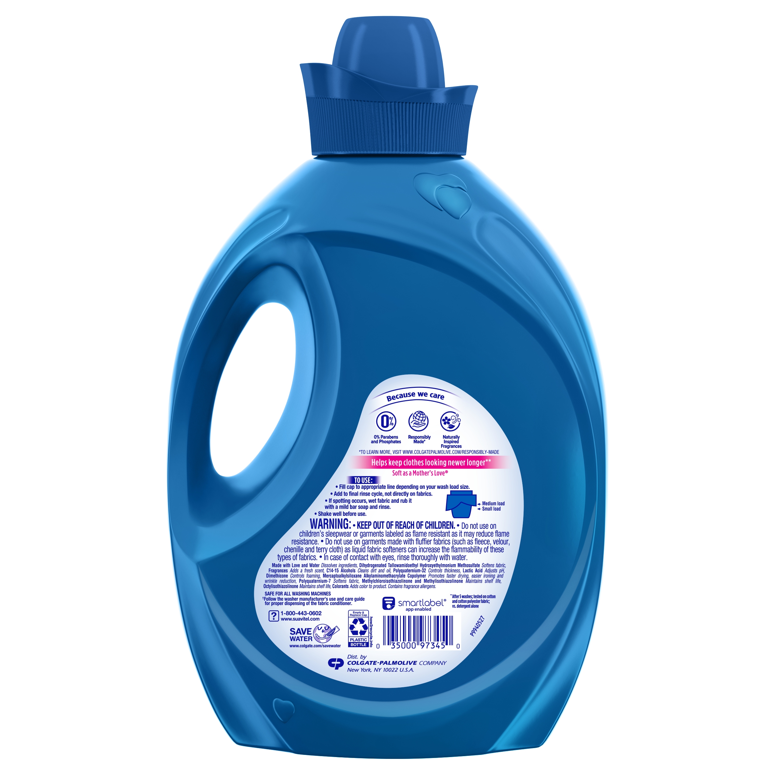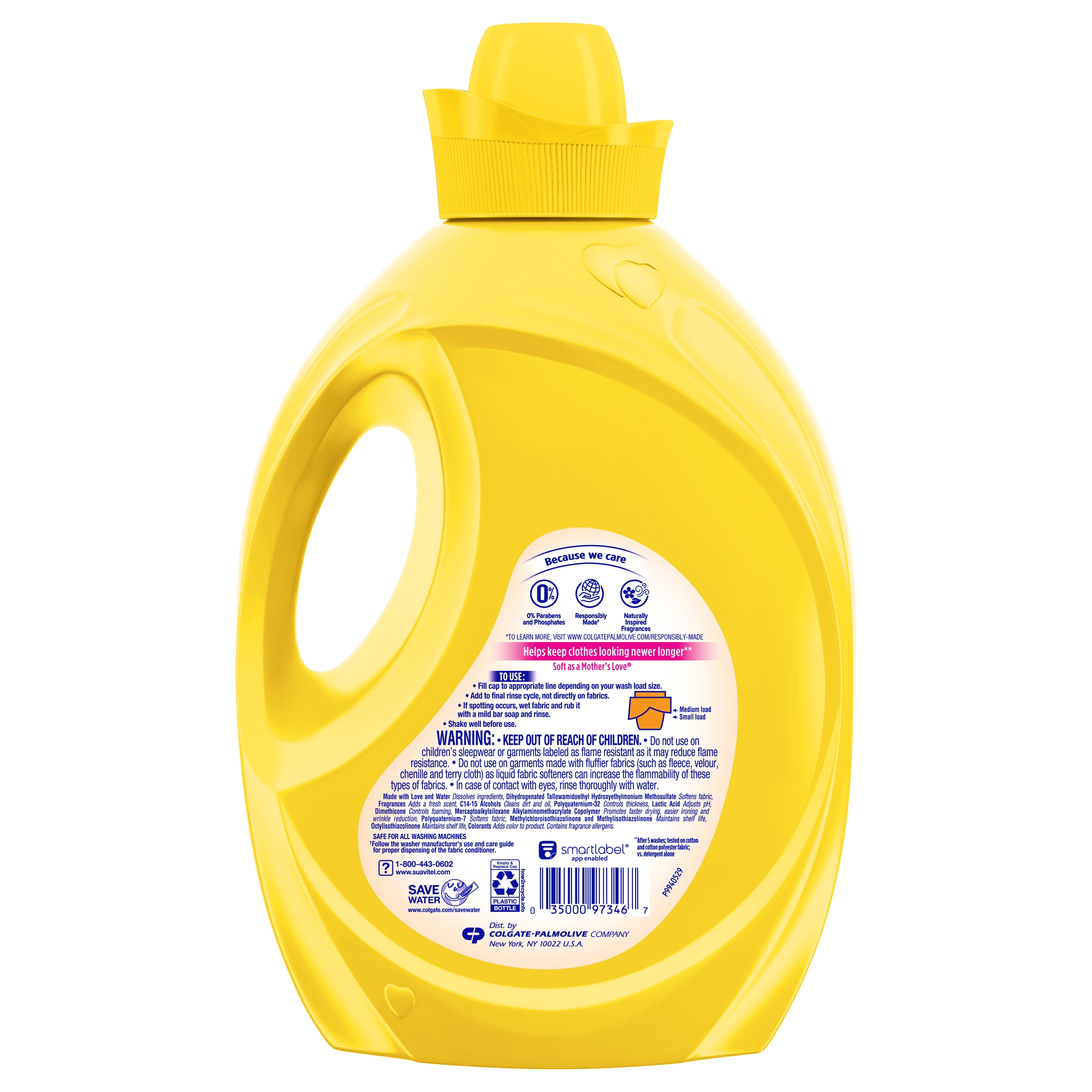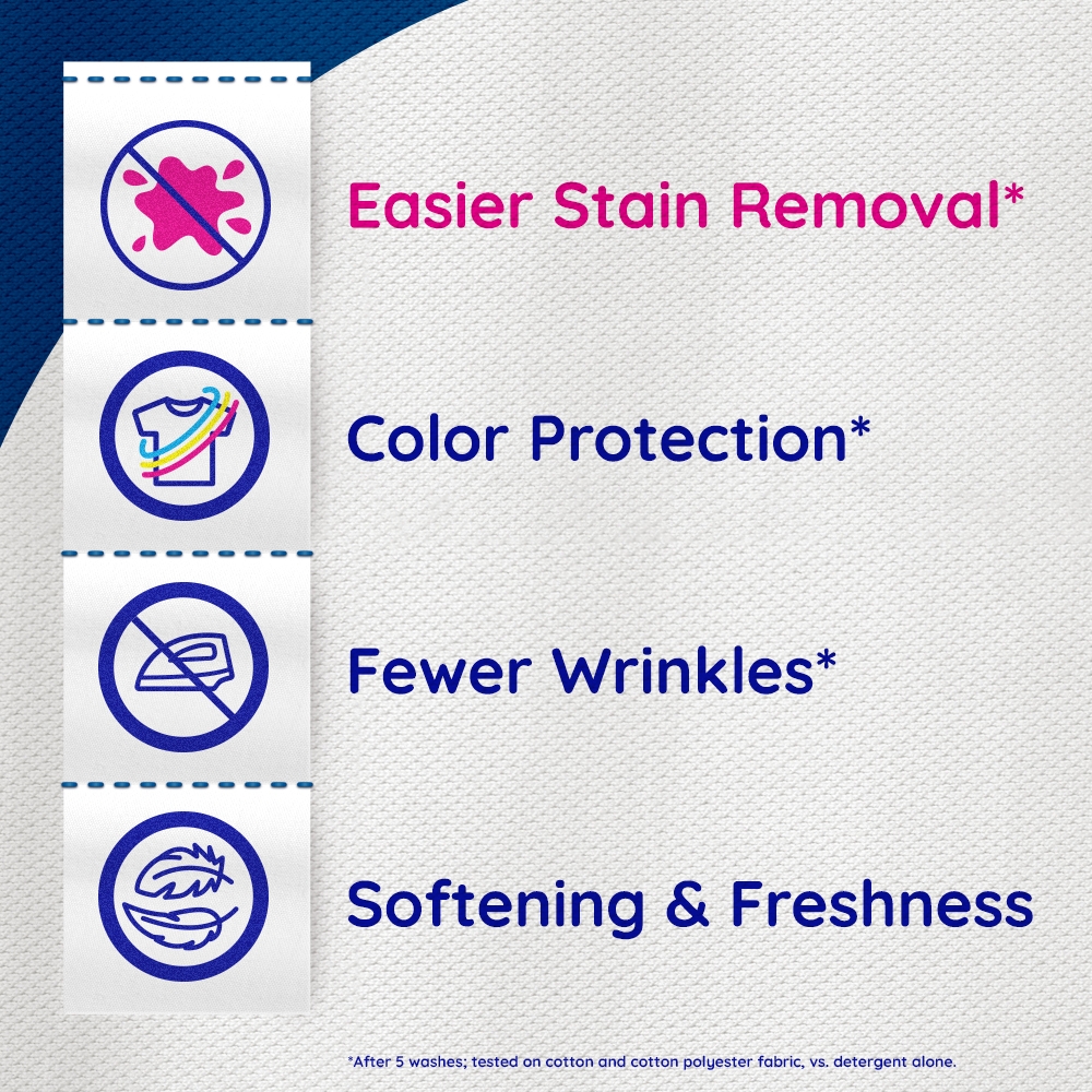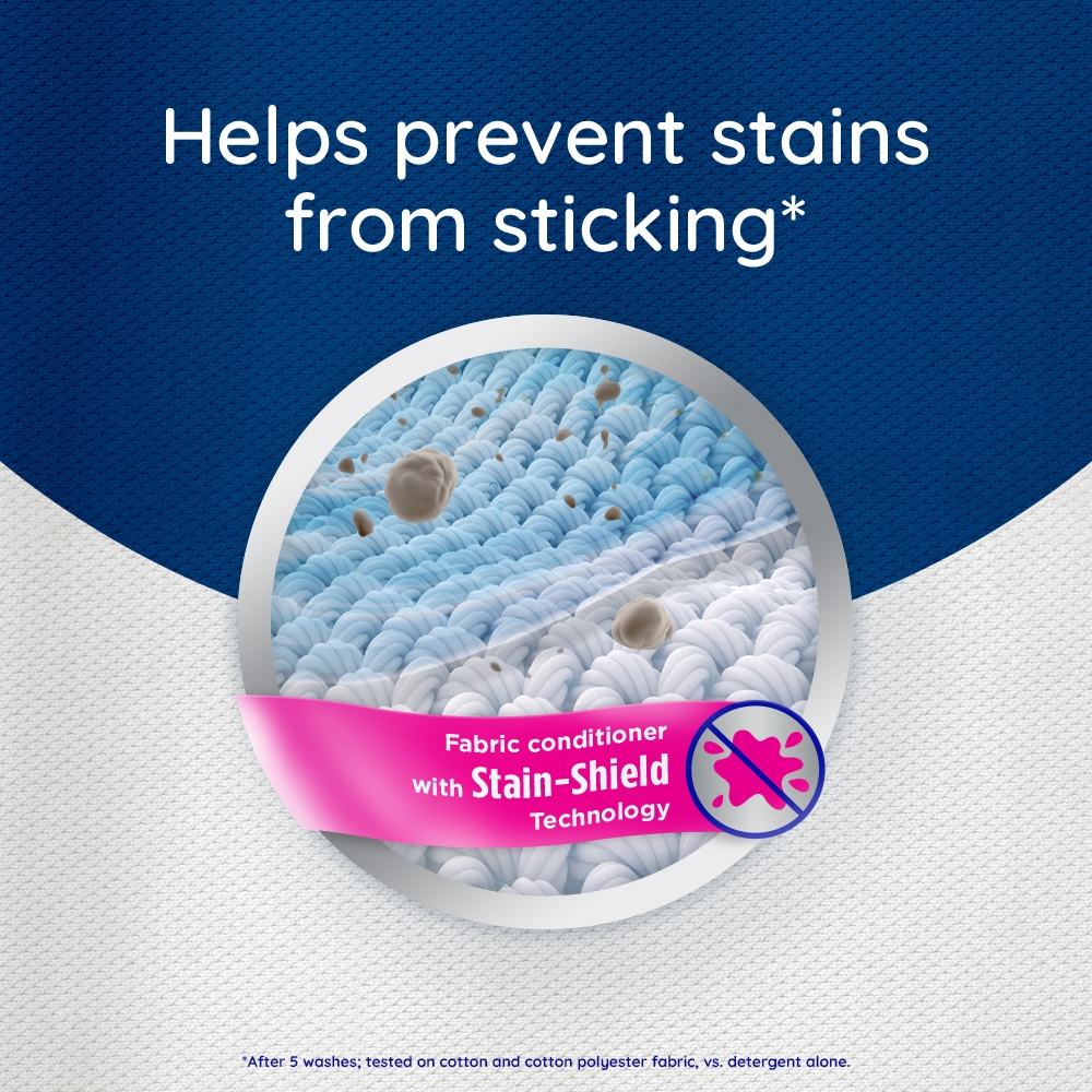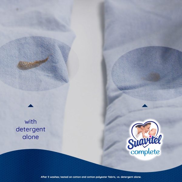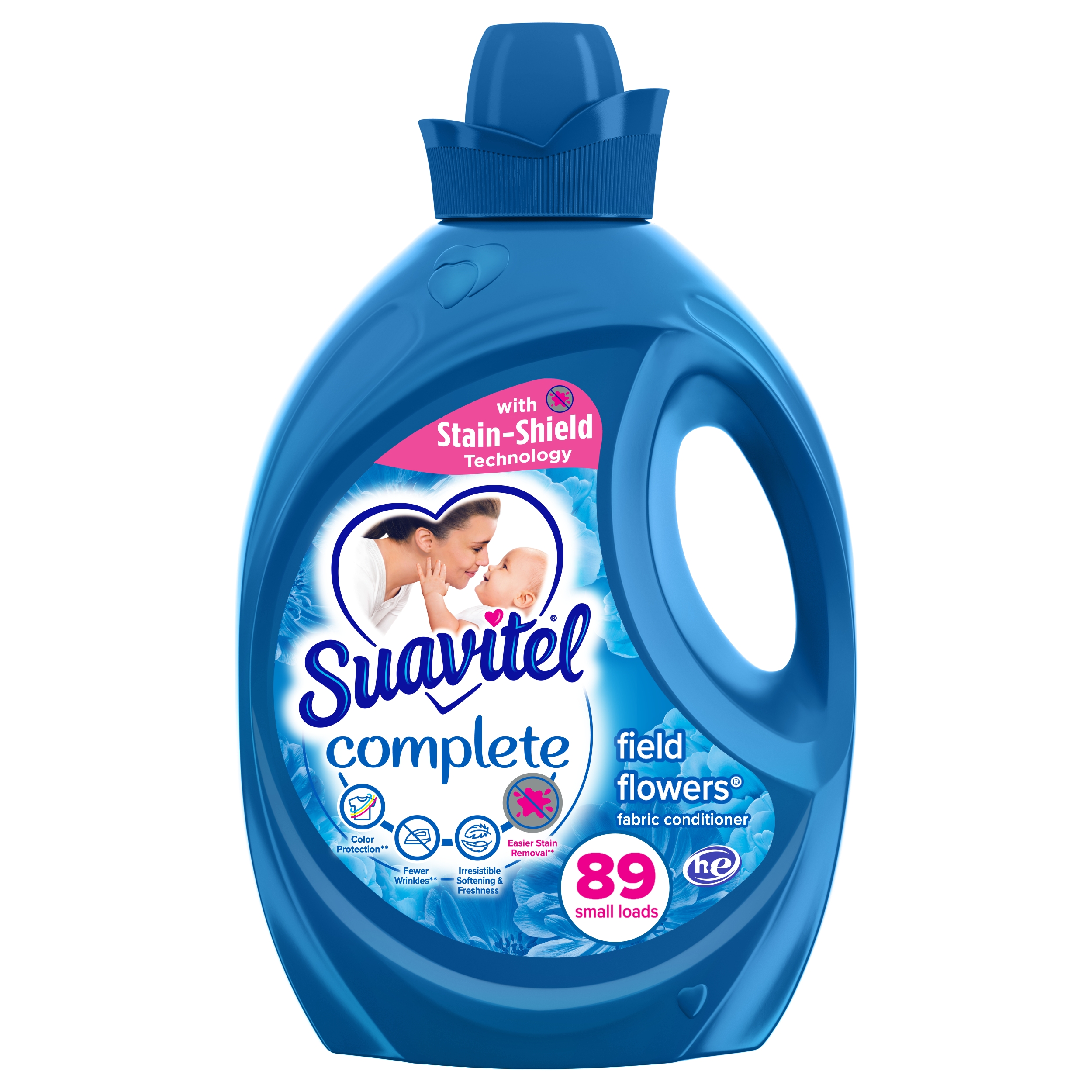 In today’s busy world, we could all use an easy way to care for clothes. Suavitel® Complete features Stain-Shield technology which builds an invisible shield on your clothes to help prevent stains from sticking, for easier removal when washed with detergent**. This liquid fabric softener also has technology that provides color protection** and fewer wrinkles**, all while delivering irresistible softening and freshness that you and your family will love. Suavitel® Complete helps keep clothes looking newer longer.** There’s enough liquid for 89 loads. This fabric softener is also compatible with regular and HE washing machines. **After 5 washes; tested on cotton and cotton polyester fabric; vs. detergent alone.