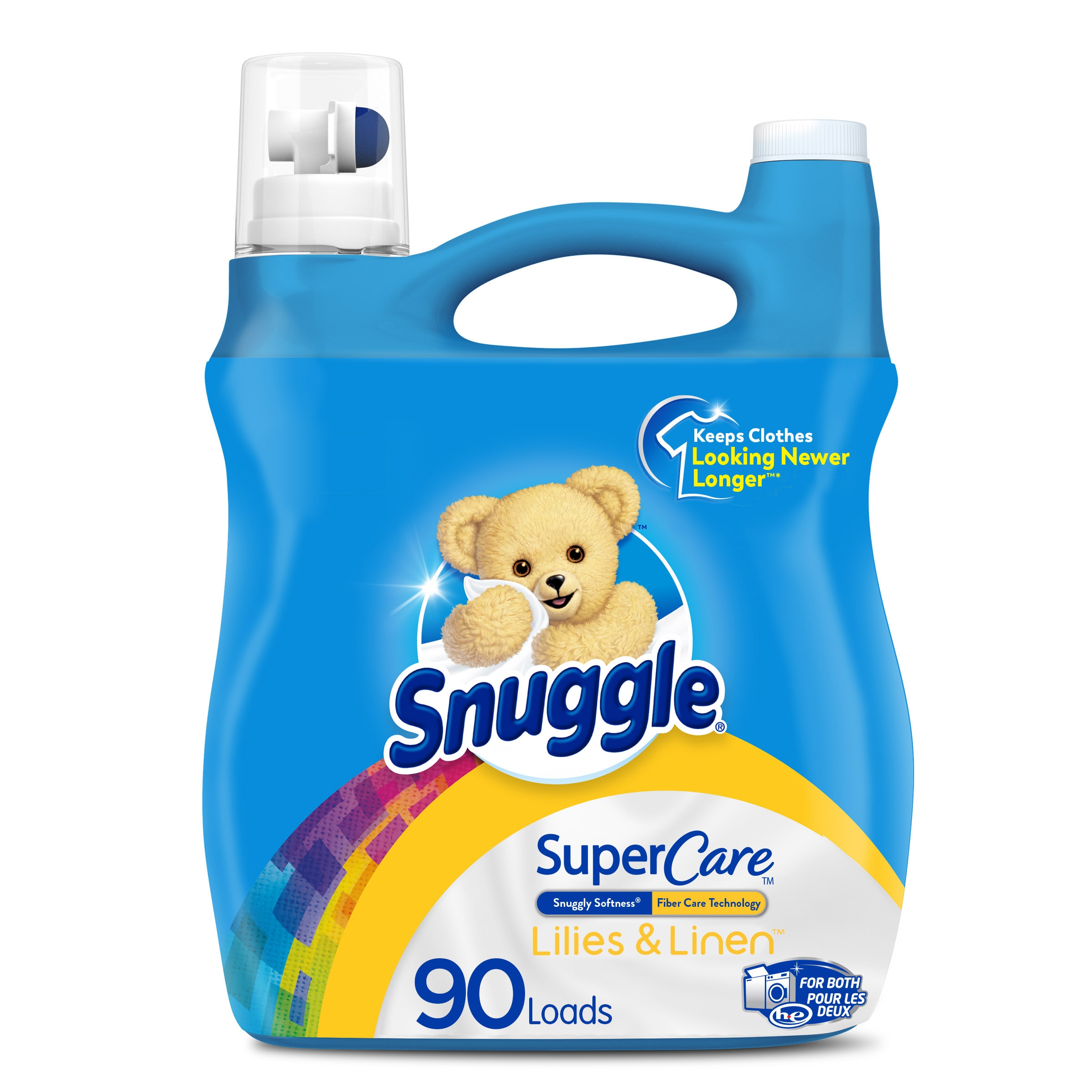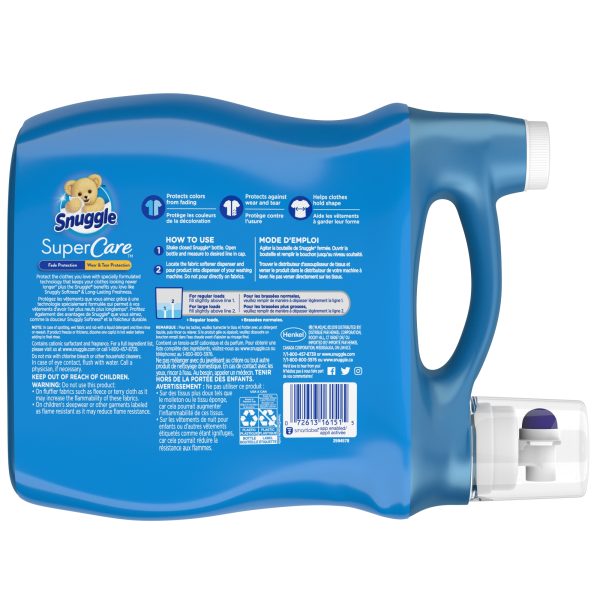 New Snuggle SuperCare keeps clothes looking newer longer*. This fabric conditioner protects the clothes you love with specially formulated technology that prevents wear & tear and color fading. All this plus the Snuggly Softness and Long-Lasting Freshness you love. This package includes one 48.6 ounce bottle of Snuggle SuperCare liquid fabric softener in Lilies and Linen scent, enough for 46 loads. *v. leading value liquid detergent alone