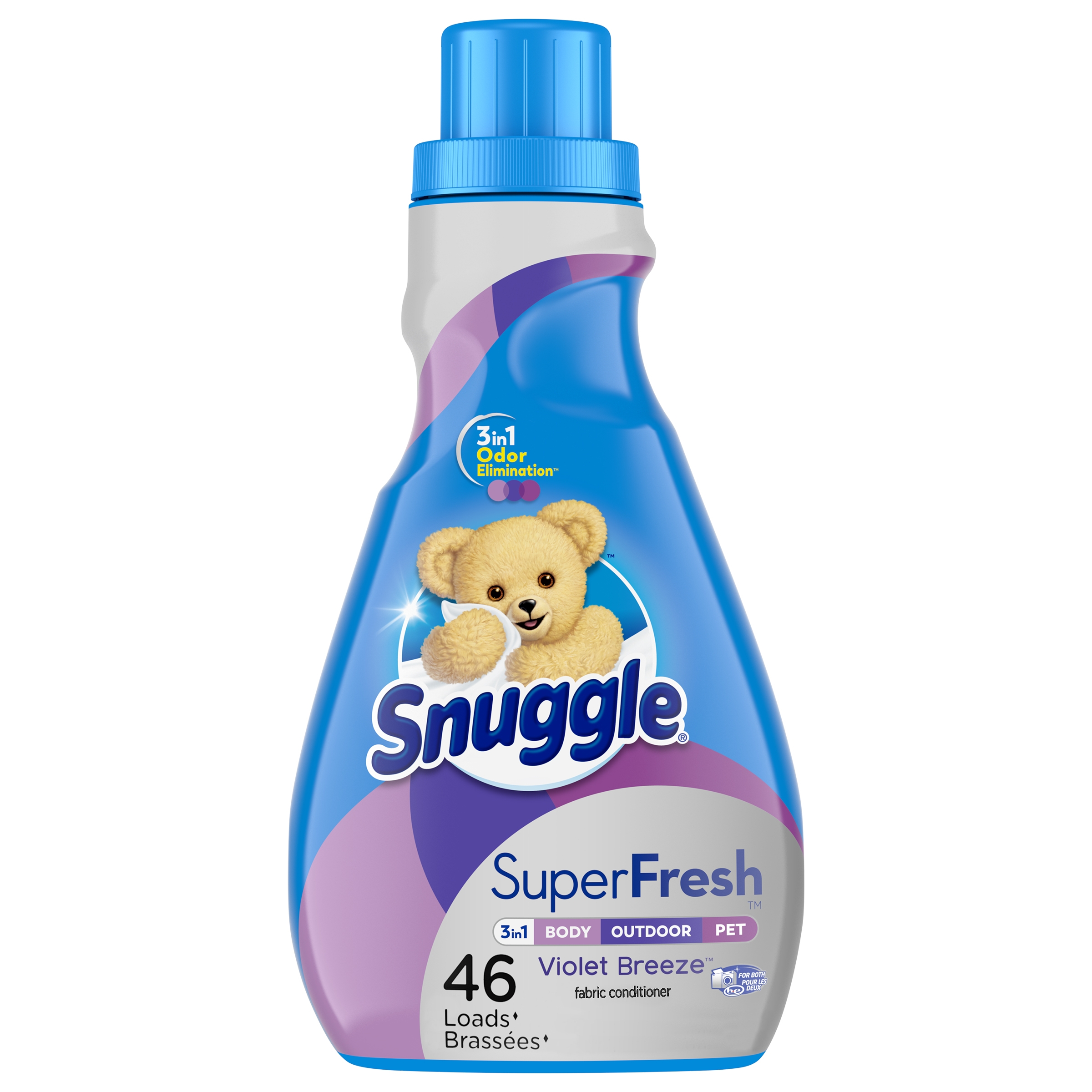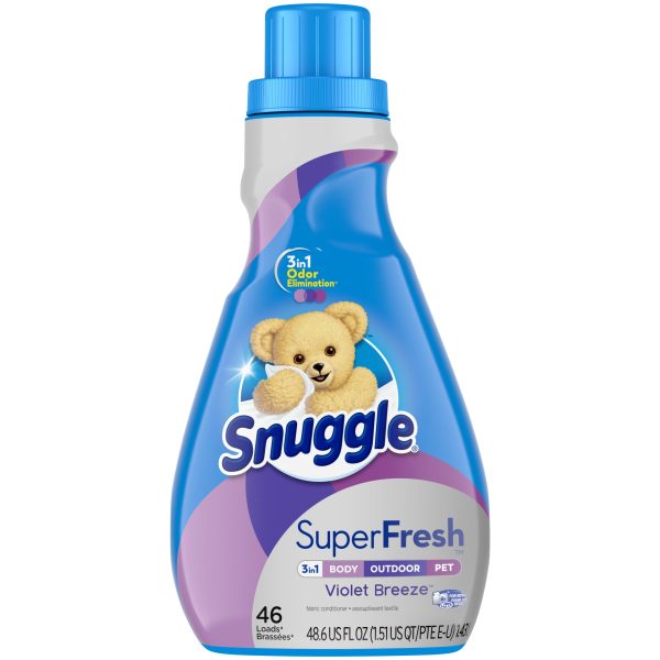Now in a new Violet Breeze scent! Snuggle Plus SuperFresh features the Snuggly softness you love, plus odor eliminating technology. It doesn’t just mask tough odor, it helps eliminate it and releases Snuggly freshness. Snuggle Plus Superfresh is specially formulated to attack tough odor like body, pet and outdoor odors. For a top loader washing machine, add Snuggle brand liquid fabric softener during the final rinse cycle or use an automatic dispenser for added convenience. Snuggle Plus SuperFresh is the first-ever fabric conditioner & dryer sheet regimen designed to help eliminate tough odor and keep your favorites fresh. To avoid spotting, do not pour Snuggle directly onto clothes. For a front loader machine, add Snuggle brand liquid fabric softener to the built-in fabric softener tray that is often placed to the right or left of the detergent tray. Safe for standard and HE washing machines. This package includes one 48.6-ounce bottle of Snuggle Plus SuperFresh fabric softener in Violet Breeze scent, enough for 46 loads.