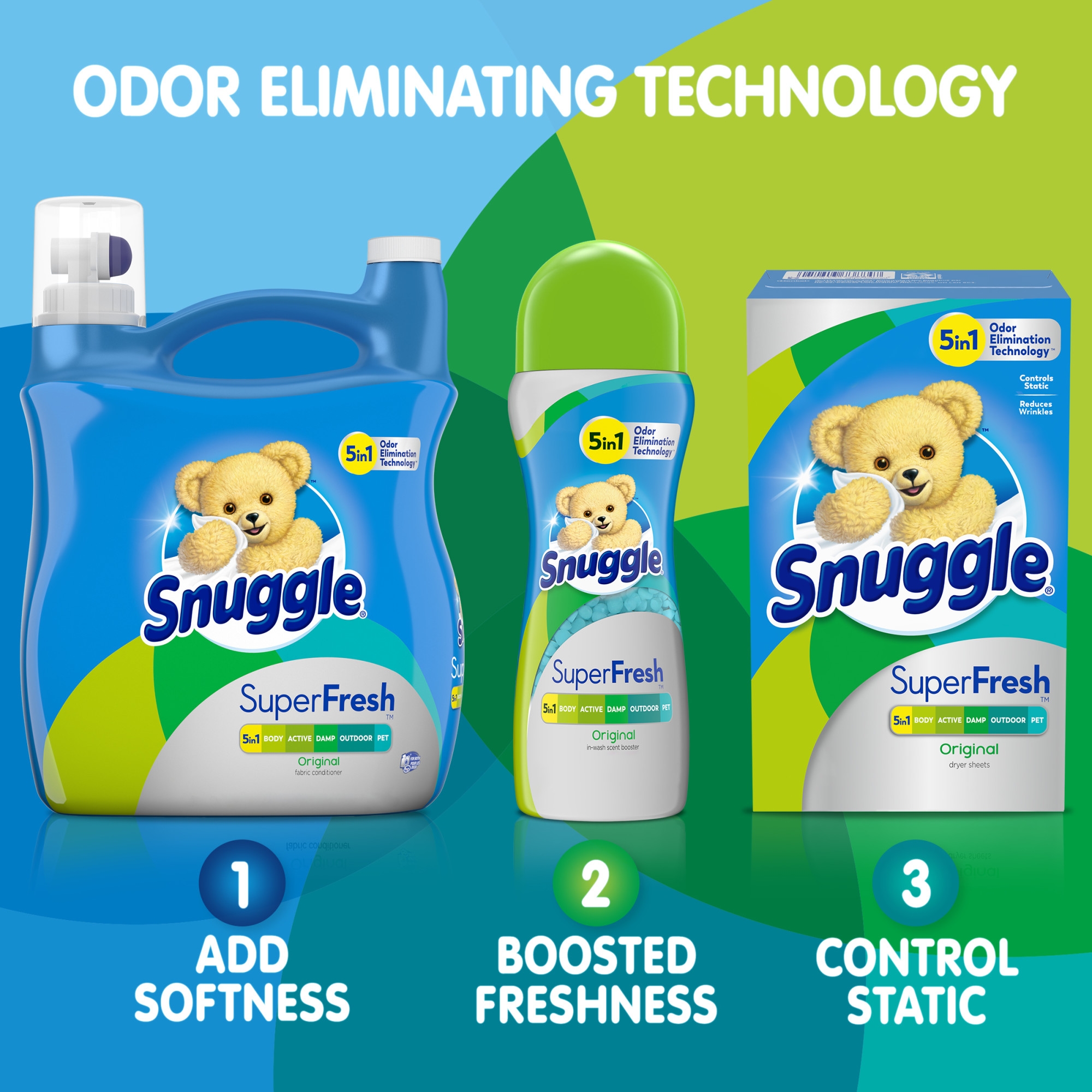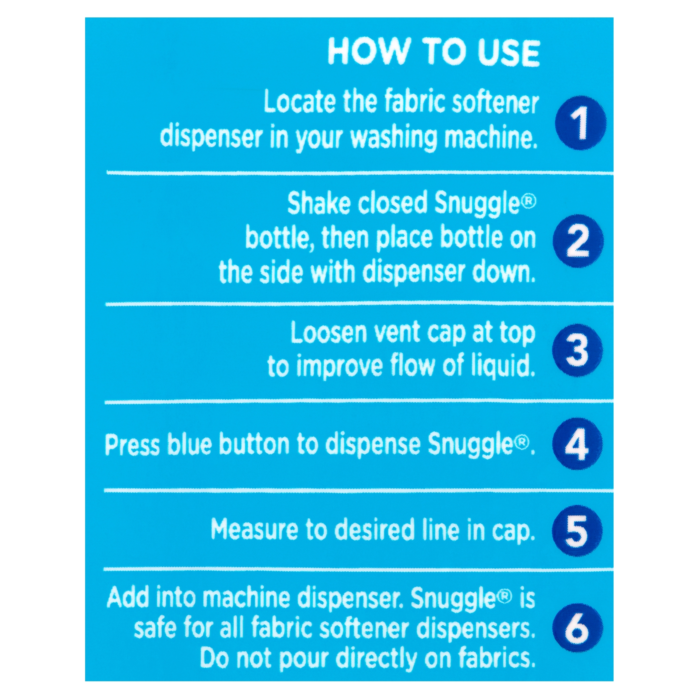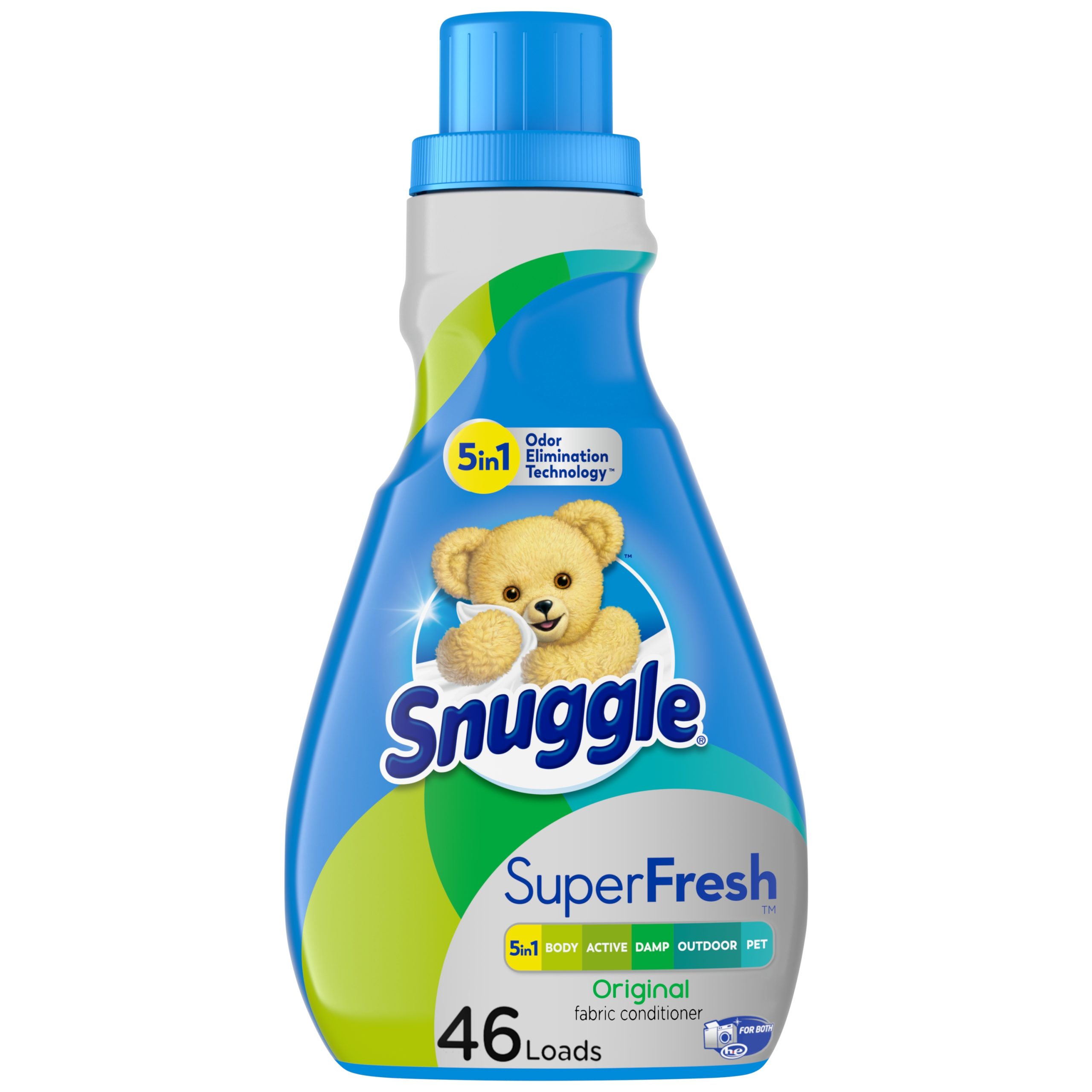 Snuggle Plus SuperFresh features the Snuggly softness you love, plus odor eliminating technology. It doesn’t just mask tough odor, it helps eliminate it and releases Snuggly freshness. Snuggle PLUS SuperFresh is the first-ever fabric conditioner & dryer sheet regimen designed to help eliminate tough odor and keep your favorites fresh. For a top loader washing machine, add Snuggle brand liquid fabric softener during the final rinse cycle or use an automatic dispenser for added convenience. To avoid spotting, do not pour Snuggle directly onto clothes. For a front loader machine, add Snuggle brand liquid fabric softener to the built-in fabric softener tray that is often placed to the right or left of the detergent tray. Safe for standard and HE washing machines. Includes one 95 oz bottle of Snuggle SuperFresh Original liquid fabric softener.