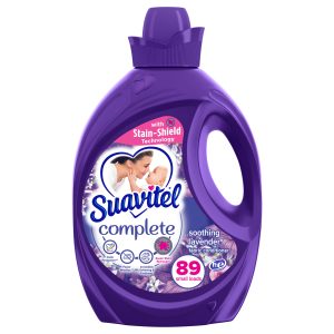 In today’s busy world, we could all use an easy way to care for clothes. Suavitel® Complete features Stain-Shield technology which builds an invisible shield on your clothes to help prevent stains from sticking, for easier removal when washed with detergent**. This liquid fabric softener also has technology that provides color protection** and fewer wrinkles**, all while delivering irresistible softening and freshness that you and your family will love. Suavitel® Complete helps keep clothes looking newer longer.** There’s enough liquid for 89 loads. This fabric softener is also compatible with regular and HE washing machines, so you can enjoy soft and snuggly clothes with the soothing sent of lavender.