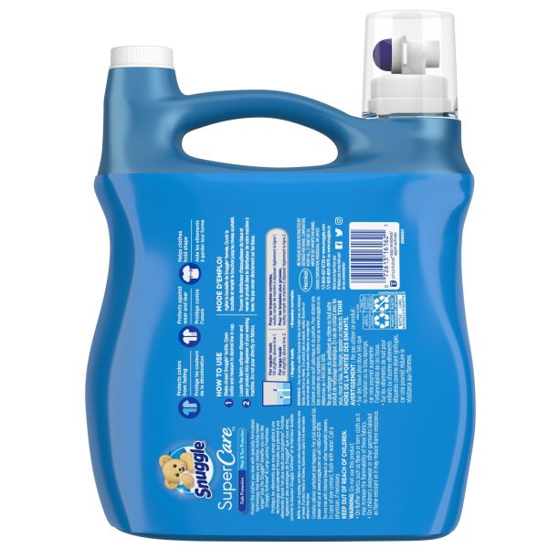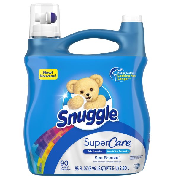 Snuggle SuperCare keeps clothes looking newer longer*. This fabric conditioner protects the clothes you love with specially formulated technology that prevents wear & tear and color fading. All this plus the Snuggly Softness and Long-Lasting Freshness you love. Protect the clothes you love with Fade Protection and Wear & Tear Protection. All the Snuggly Softness and Long-Lasting Freshness you love from Snuggle! Warning: Do not use this product: On fluffier fabrics such as fleece or terry cloth as it may increase the flammability of these fabrics. On children’s sleepwear or other garments labeled as flame resistant as it may reduce flame resistance. This package includes one 95 ounce bottle of Snuggle SuperCare liquid fabric softener in Sea Breeze scent, enough for 90 loads. *v. leading value liquid detergent alone
