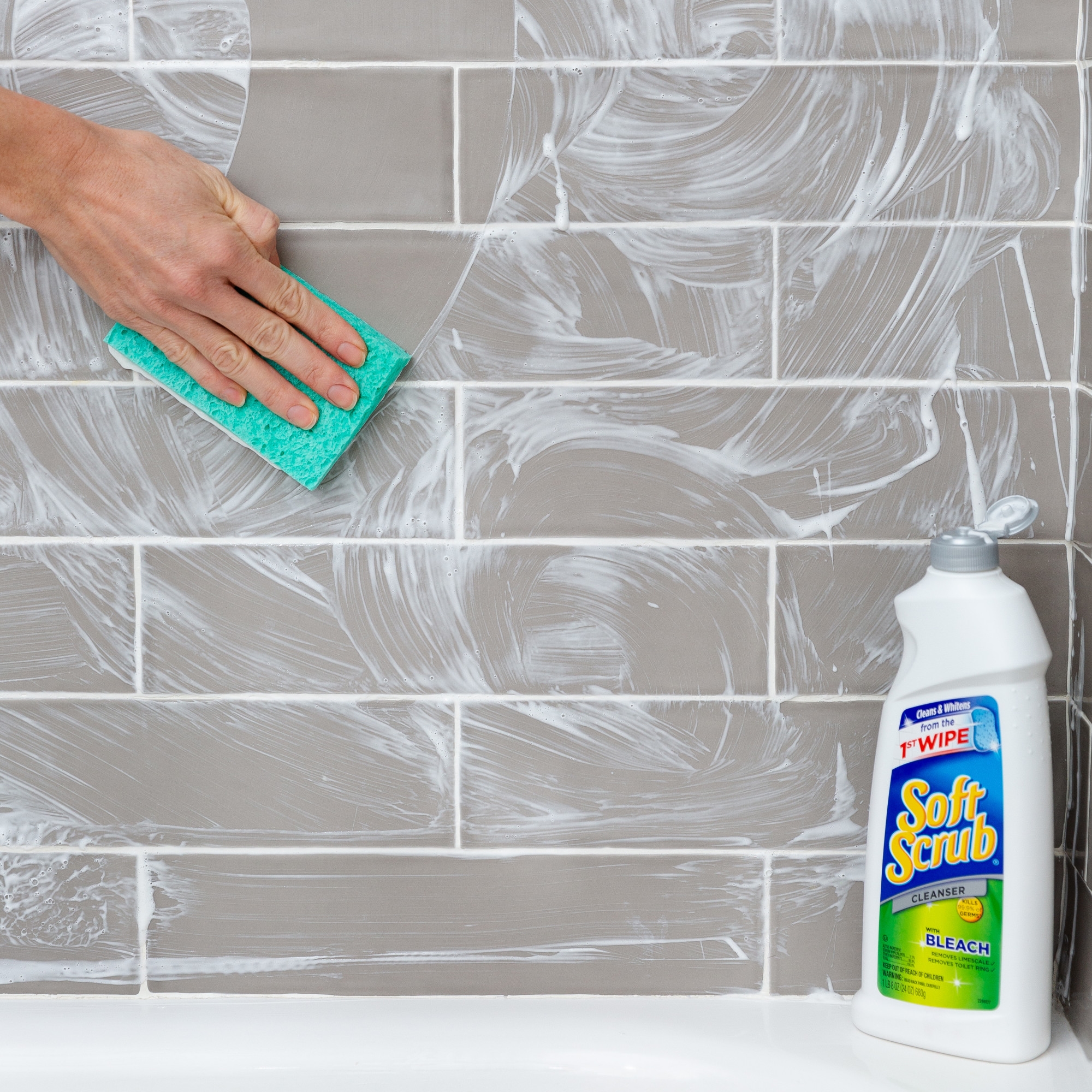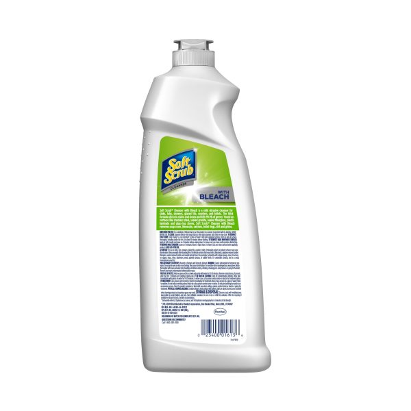 Soft Scrub Antibacterial Cleanser with Bleach is a mild abrasive cleanser for sinks, tubs, showers, glazed tile, counters and toilets. This bleach power formula is tough on stains and gentle on surfaces, so it’s easy to achieve a brilliant, scratch-free shine on most surfaces. The thick formula sticks to stains and cleans and kills 99.9% of germs* found on surfaces like stainless steel, sealed granite, sealed fiberglass, plastic laminate and glass-top stoves. Soft Scrub Disinfecting Cleanser with Bleach is germicidal and removes soap scum, limescale, calcium, toilet rings, dirt and grime. This product is Orthodox Union certified Kosher. *Salmonella enterica and Staphylococcus aureus in 3 minutes at full strength.This package includes one 36 fluid ounce bottle of Soft Scrub with Bleach Cleanser.
