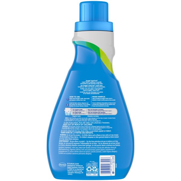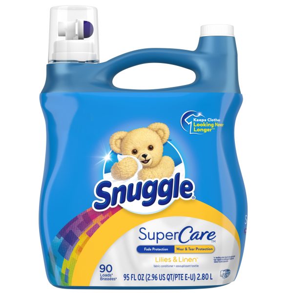 Snuggle SuperCare keeps clothes looking newer longer*. This fabric conditioner protects the clothes you love with specially formulated technology that prevents wear & tear and color fading. All this plus the Snuggly Softness and Long-Lasting Freshness you love. How to use: 1) Shake closed Snuggle bottle. Open bottle and measure to desired line in cap. 2) Locate the fabric softener dispenser and pour proud into dispenser of your washing machine. Do not pour directly on fabrics. For regular loads, fill slightly above line 1. For large loads, fill slightly above line 2. In case of spotting, wet fabric and rub with a liquid detergent and then rinse or rewash. If product freezes or thickens, dissolve one capful in hot water before adding to the final rinse. Snuggle SuperCare fabric softener is safe for both high efficiency (HE) and regular washing machines This package includes one 95 ounce bottle of Snuggle SuperCare liquid fabric softener in Lilies and Linen scent, enough for 90 loads. *v. leading value liquid detergent alone
