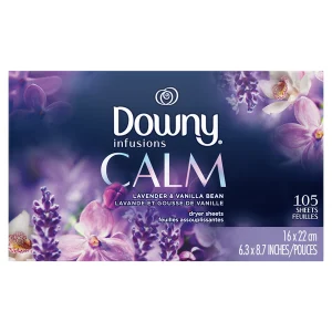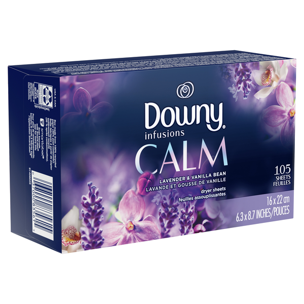 The soothing scents of lavender and vanilla Bean flutter to life in Downy Infusions calm fabric softener dryer sheets, for clothes that smell as comforting as they feel. Your clothes will have a calming Lavender scent after you use this scented fabric enhancer in your laundry. Scented sheets refresh clothes to keep them soft and help prevent laundry static. Safe for all fabrics and dryers, simply load your machine, toss in a laundry sheet, and dry your clothes. For even more mood-sparking scents, try Downy Infusions calm In-Wash Scent Booster beads and fabric softener.