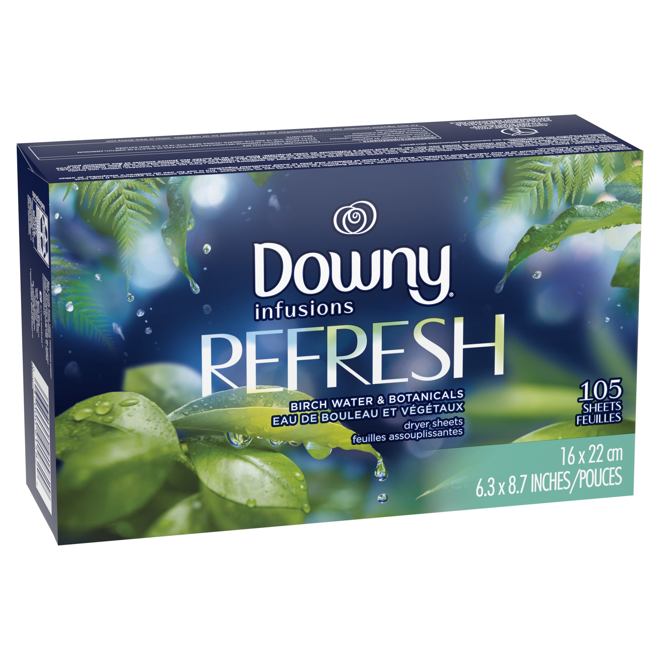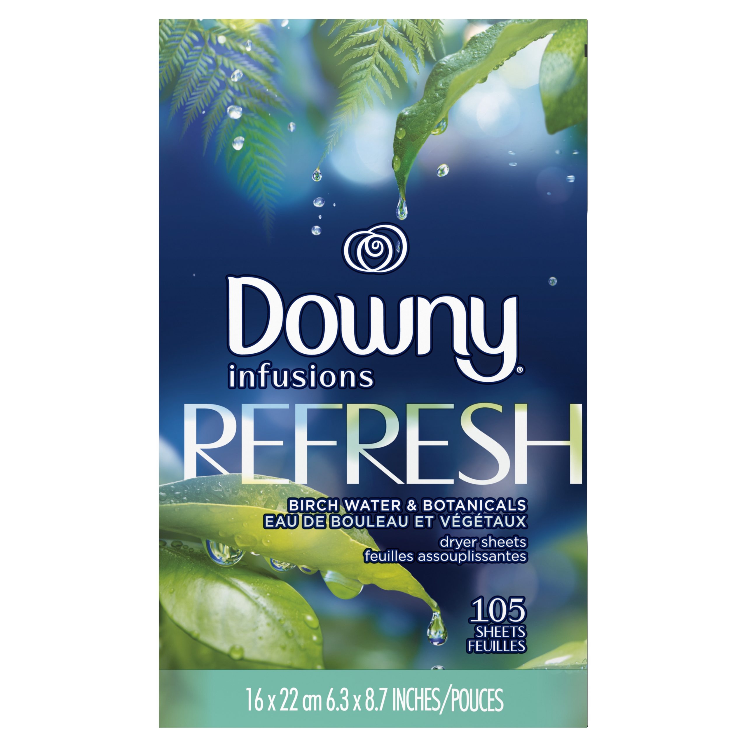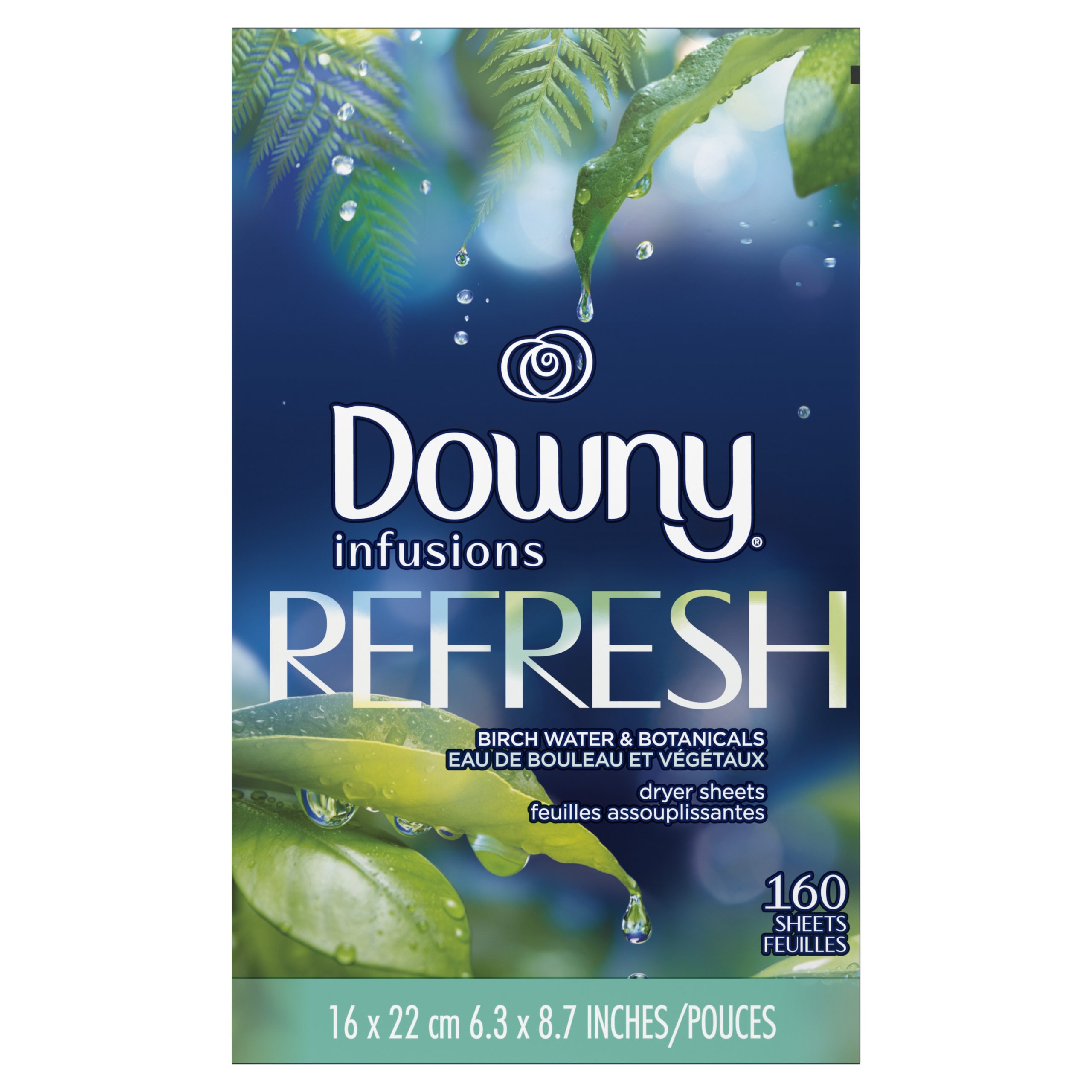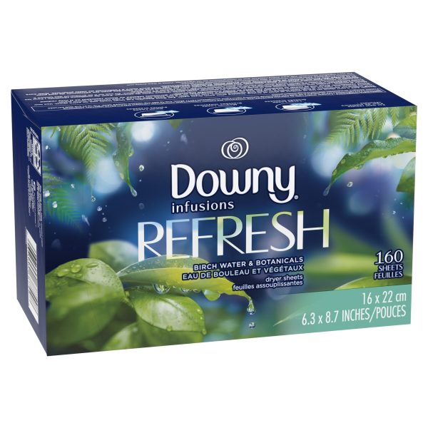 Downy Infusions Fabric Softener Dryer Sheets, Refresh, Birch Water & Botanicals, 160 Ct