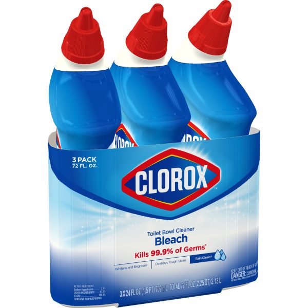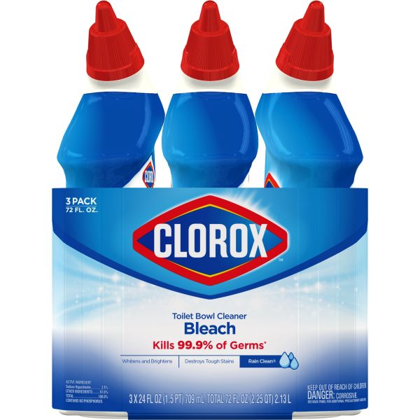 Clorox Toilet Bowl Cleaner with Bleach, Rain Clean – 24 Ounces, 3 Pack