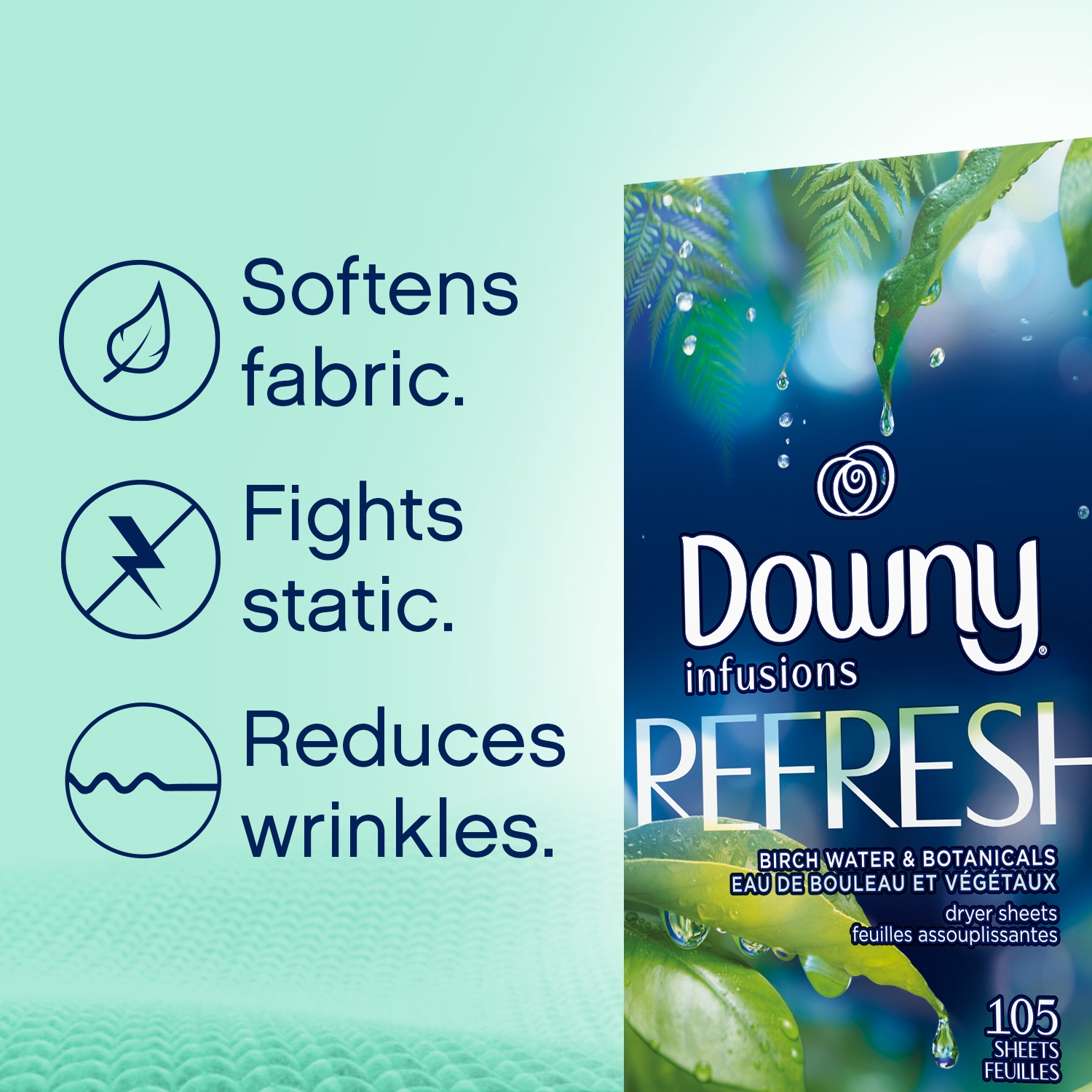 Bring more energy to your laundry routine with Downy Infusions Refresh Fabric Softener Dryer Sheets. This laundry scent booster’s invigorating scents of birch water and botanicals spark brighter moods and fresher clothes. Scented sheets refresh clothes to keep them soft and help prevent laundry static. Safe for all fabrics and dryers, simply load your machine, toss in a laundry sheet, and dry your clothes. For even more mood-sparking scents, try Downy Infusions Refresh In-Wash Scent Booster Beads and Fabric Softener.