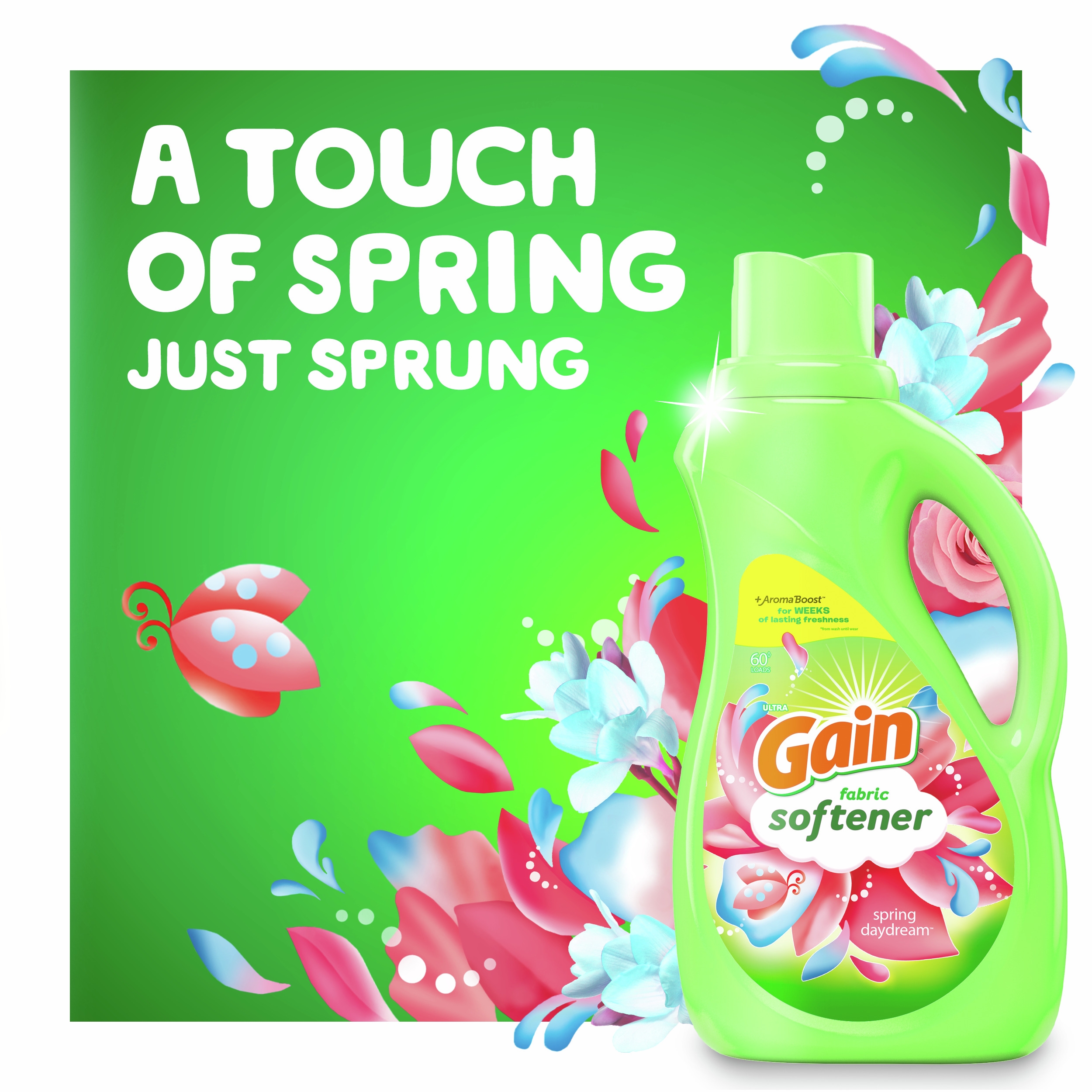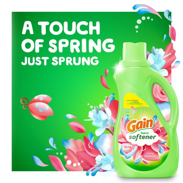 This is not your everyday fabric softener. This is pure liquid amazing. With the awe-inspiring scent of a blooming meadow and the oh-so-gentle softness found in Gain Spring Daydream Fabric Softener, your laundry will feel as good as it smells. Let the self-hugging begin. And because of our incredible Aroma boost technology, you can indulge your senses for weeks of long-lasting freshness. With Gain Spring Daydream Fabric Softener, you’re in for an experience that is so soft and so full of scent, you’re sure to fall in love. For the same amazing scent, try Gain Spring Daydream Laundry Detergent, In-Wash Scent Booster Beads and Dryer Sheets too.