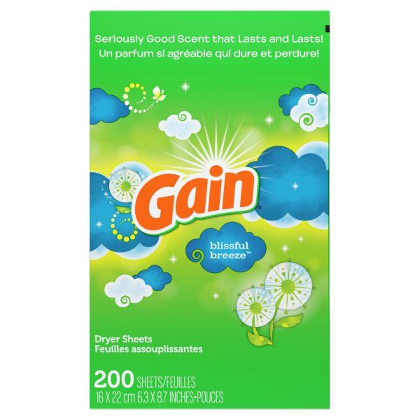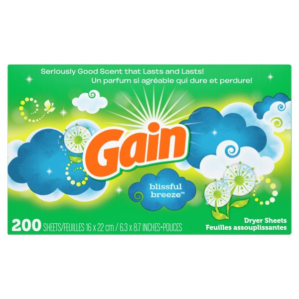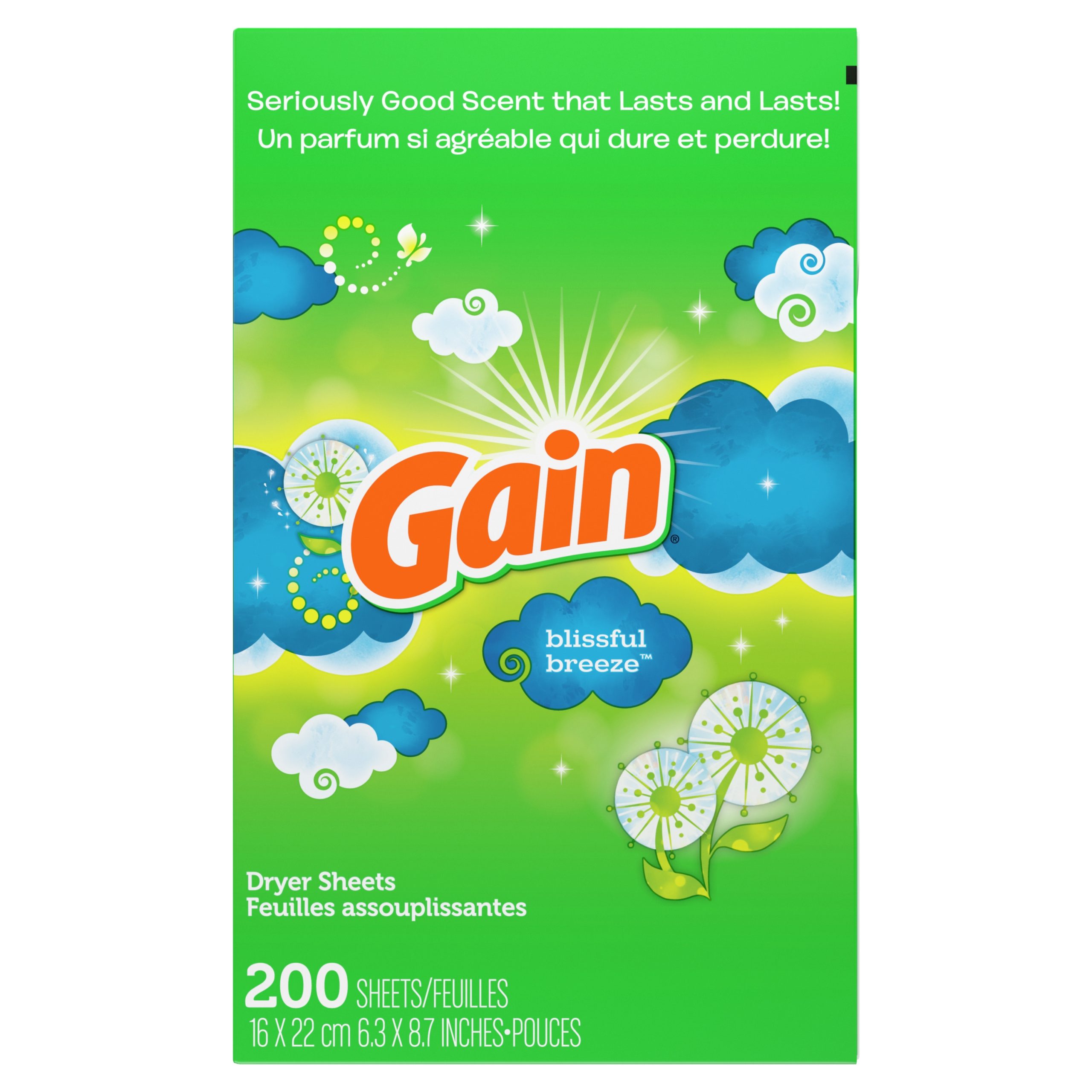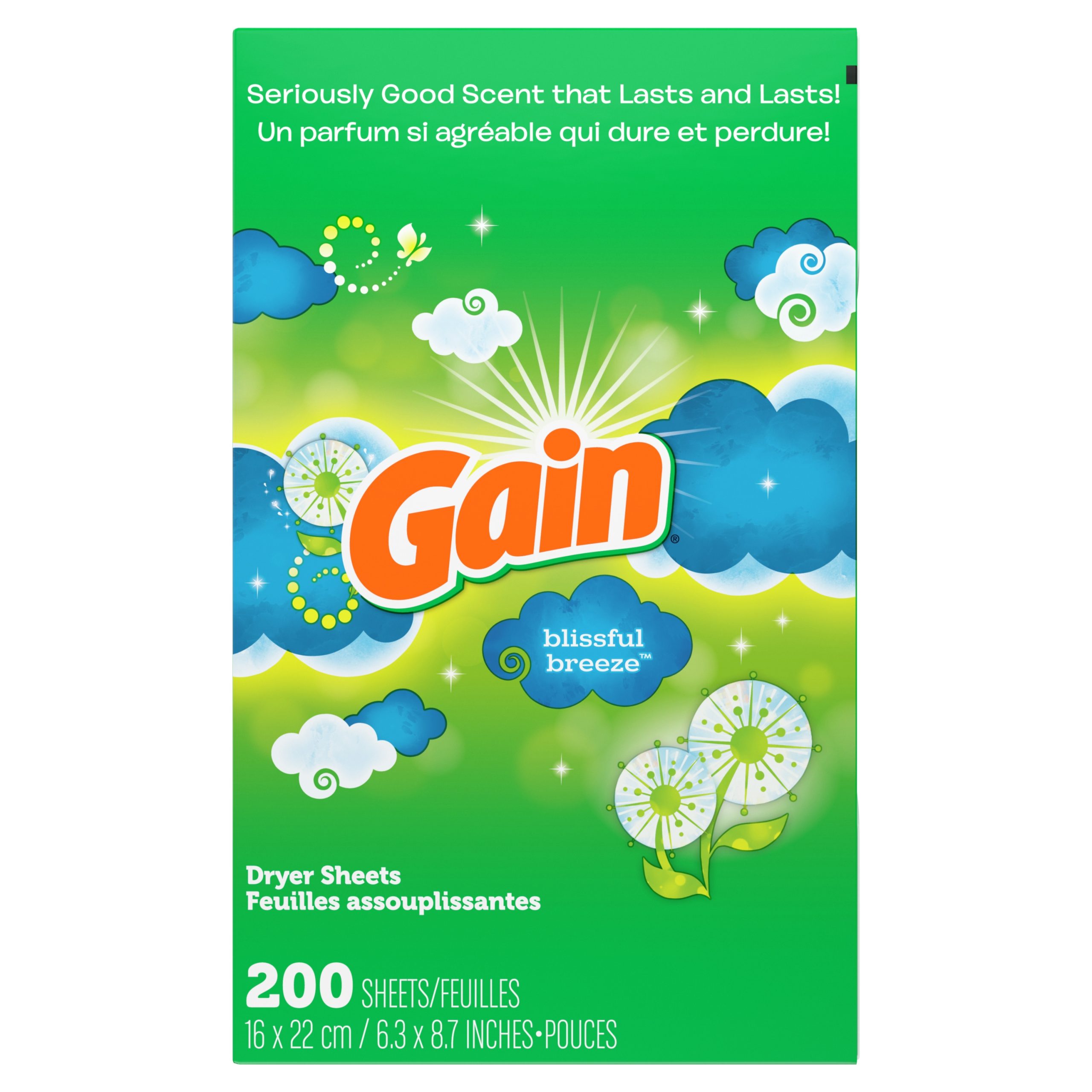 Gain Fabric Softener Dryer Sheets, Blissful Breeze, 200 Count