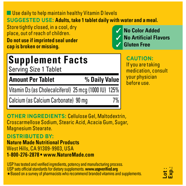Nature Made Vitamin D3 1000 IU (25 mcg) Tablets