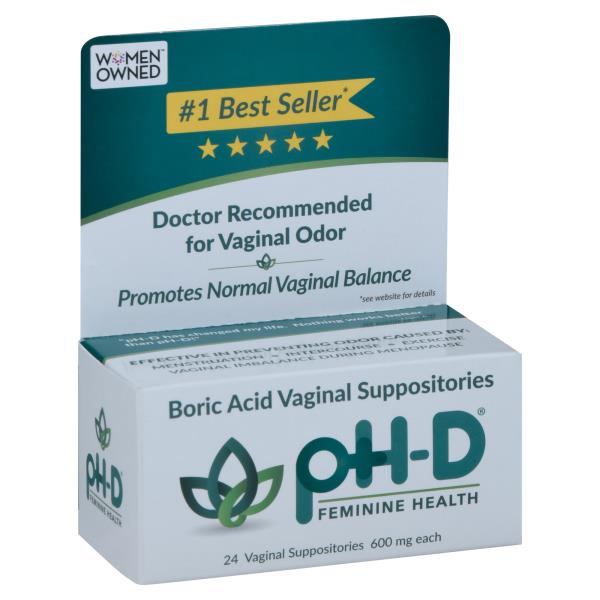 Ph-D Vaginal Suppositories, Boric Acid, 600 mg