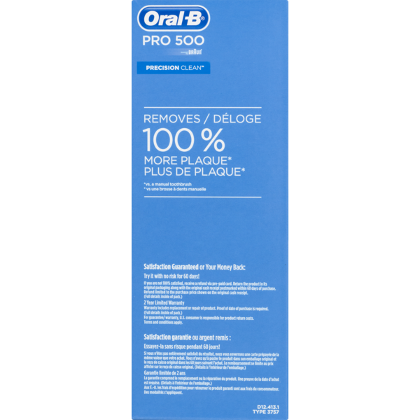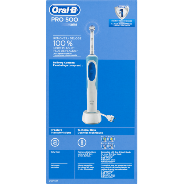 Oral-B Pro 500 Electric Power Rechargeable Toothbrush with Automatic Timer Precision Clean Brush Head