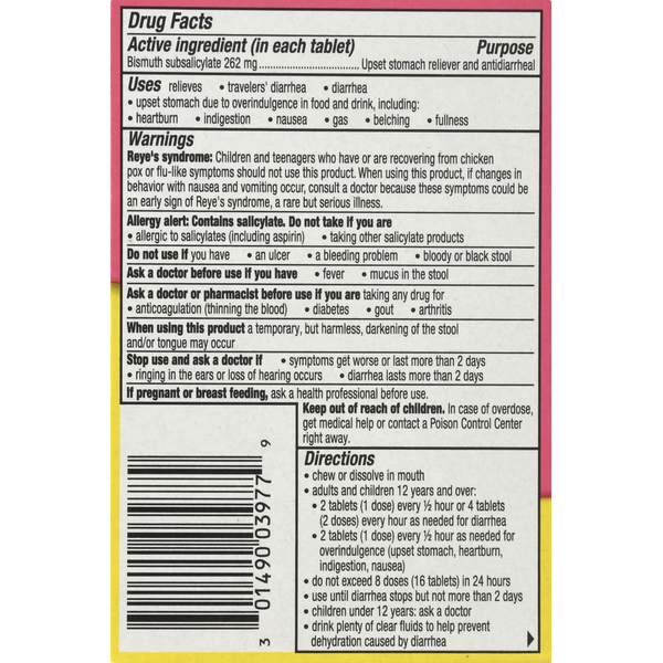 Pepto-Bismol Chewable Tablets Fast Relief, Original Flavor