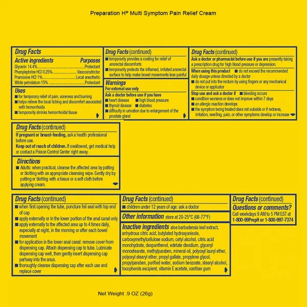 PREPARATION H Multi Symptom Hemorrhoid Cream Tube, Multi Symptom Hemorrhoid Cream Tube