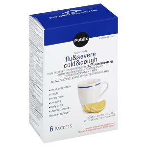 Publix Flu & Severe Cold & Cough, Nighttime, Honey Lemon Infused with White Tea Flavors, Packets