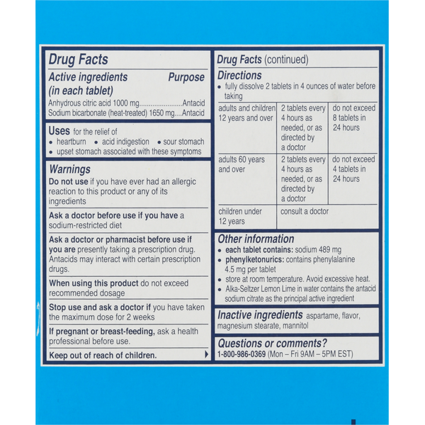 Alka-Seltzer Heartburn Relief, Lemon Lime, Effervescent Tablets