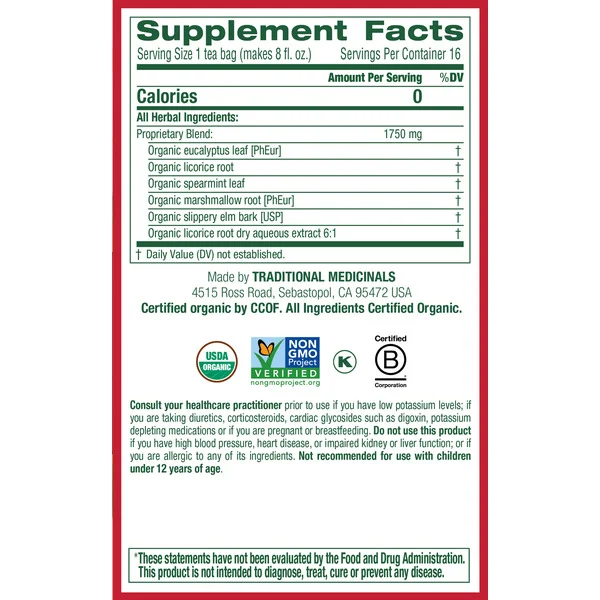 Traditional Medicinals Organic Throat Coat Eucalyptus, Caffeine Free Herbal Tea
