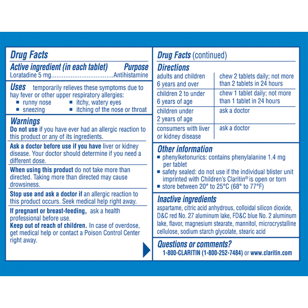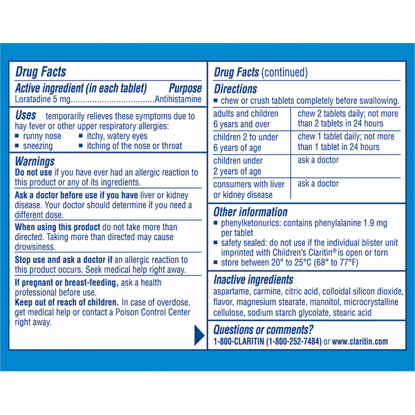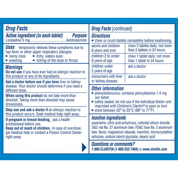 Claritin Antihistamine, 5 mg, Chewable Tablets, Grape Flavored