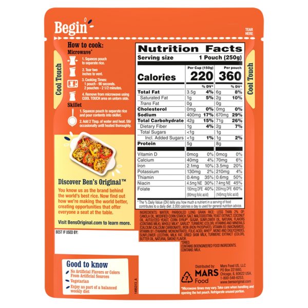 u0026bull; Microwaves in just 90 secondsu003cbru003eu0026bull; 100% Authentic Thai Riceu003cbru003eu0026bull; No artificial colors, flavors or preservativesu003cbru003eu0026bull; No trans fat, no saturated fat, no cholesterol u003cbru003eu0026bull; Convenient pouch eliminates prep and cleanup