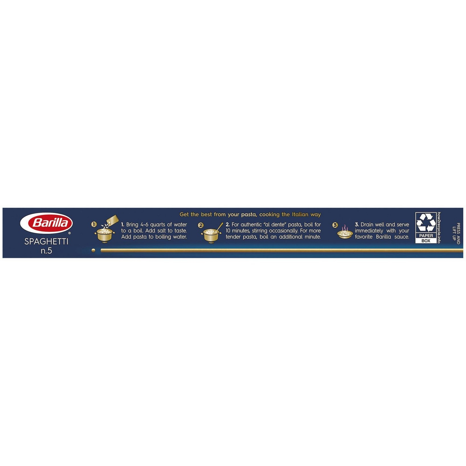 u0026bull;SPAGHETTI PASTA: Give BARILLA Blue Box Spaghetti a twirl! No doubt it’s the most fun pasta to eat and its delicious texture will please the whole familyu003cbru003eu0026bull;BARILLA PASTA: Long, golden strands of pasta made with 100% durum wheat and water to deliver great taste and “al dente” texture every timeu003cbru003eu0026bull;CREATE DELICIOUS PASTA MEALS: Pairs well with just about any type of pasta sauce or spaghetti sauce: from a simple tomato sauce to a hearty meat sauce, a chunky vegetable sauce or a creamy carbonara sauceu003cbru003eu0026bull;QUICK AND EASY TO COOK PASTA: “Al dente” perfection in 10-11 minutesu003cbru003eu0026bull;FREE FROM MAJOR ALLERGENS: This pasta is lactose, peanut, shell fish, fish, tree nut, and soy free; Suitable for vegetariansu003cbru003eu0026bull;NON-GMO u0026 KOSHER CERTIFIED PASTA: BARILLA Blue Box pasta is crafted with the highest quality Non-GMO durum wheat semolina and is kosher certifiedu003cbru003eu0026bull;BARILLA BLUE BOX PASTA: A pantry staple, people know the classic BARILLA Blue Box stands for quality and a perfectly “al dente” pasta texture every time. That’s why BARILLA pasta has been an Italian favorite for over 140 years