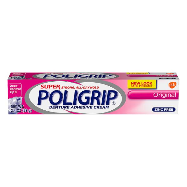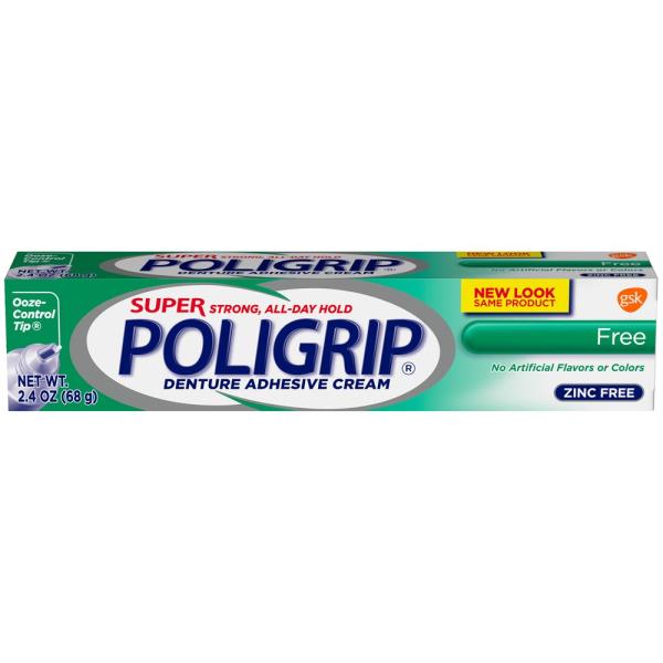 SUPER POLIGRIP Super Poligrip Additive Free – Zinc Free Denture and Partials Adhesive Cream – 2.4oz