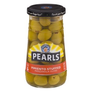 Add a delectable taste to a variety of meals with Stuffed Manzanilla Olives. Use this flavorful item in salads, cold or hot hoagies, antipastos and so much more. These pimento olives are also a great addition to a number of cocktails such as martinis, bloody Mary’s, and more. They come in a 5.75-oz glass jar that is easy to store in a cupboard or refrigerator and has a resealable screw cap to ensure the highest amounts of freshness after being opened. This tasty and sweet item has only 25 calories per serving and contains no sugar or cholesterol. Dice these Pearls olives to be added to meats and cheeses, or mix into a cheese dip for a retro and colorful party dish. This item can be eaten as a finger snack and works with a kosher diet.