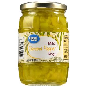 Great Value Banana Pepper Rings have a crisp texture with a bright acidity and yellow color. Their firm crunch and subtle pepper flavor make them the ideal addition to sandwiches, salads and even pizza. The freshness of the banana peppers ensures that they stay firm and crunchy. These hot pepper rings with their rich color are an excellent garnish over your favorite meals or platters. Great Value products provide families with affordable, high quality grocery and household consumable options. With our wide range of product categories spanning grocery and household consumables, we offer you a variety of products for your family’s needs. Our products are conveniently available online and in Walmart stores nationwide, allowing you to stock up and save money at the same time.