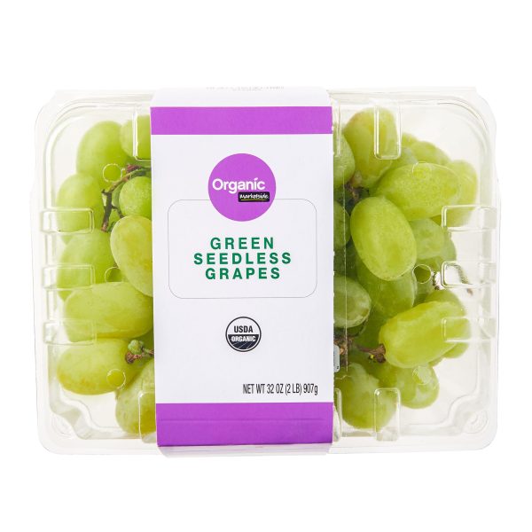 Marketside Organic Green Seedless grapes are the perfect sweet snack that your whole family will enjoy. The fresh grapes are crisp and sweet and make an excellent addition to your breakfast, lunch, dinner or snack. A ¾ cup of grapes contains just 90 calories with no fat, no cholesterol, and virtually no sodium. Grapes are also a good source of Vitamin K and a natural source of antioxidants. This container conveniently contains two pounds of grapes making it easy to have your favorite fruit on hand for everyone in the house.