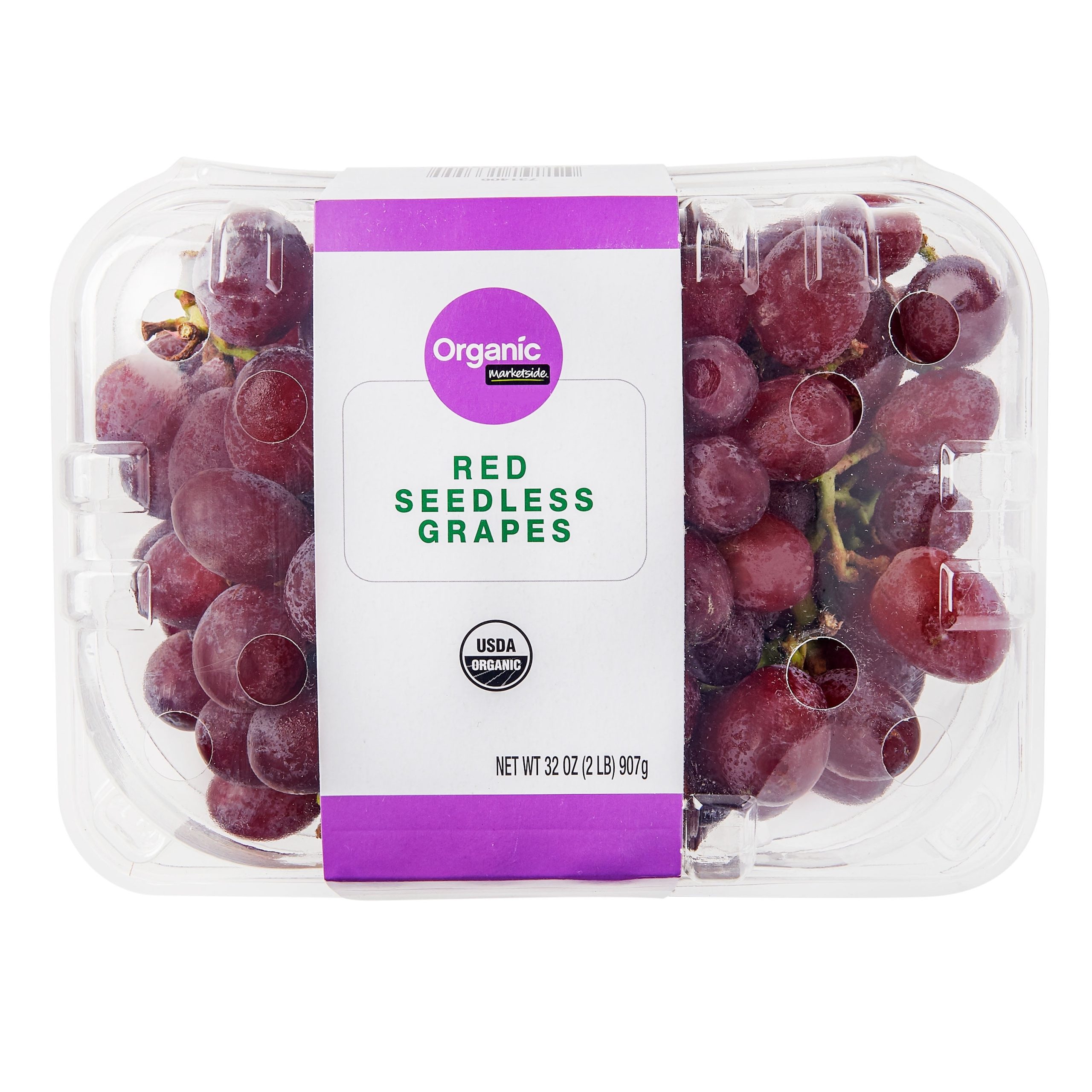 Marketside Organic Red Grapes are seedless for you convenience and deliver a pleasantly refreshing taste in every bite. These fresh grapes have a firm texture and a vibrant red color. Enjoy them as a healthy snack or use as an ingredient in sweet and savory dishes. Use them in salads, pies, tarts, chicken salad and more. They are great for health conscious individuals as they are USDA organic. They are also a nutrient dense fruit that is low in calories. This container comes with two pounds of grapes making it easy to stock up on your favorite fruit. Enjoy fresh from the farm flavors with Marketside Organic Red Grapes.Fresh ideas and quality ingredients, that’s how Marketside brings the best foods to your table. We are committed to deliver freshness that you can taste and see. Marketside offers the best in fresh food, guaranteed by Walmart, working in partnership with farmers, bakers and chefs for the highest quality, authentic ingredients and favorite recipes.